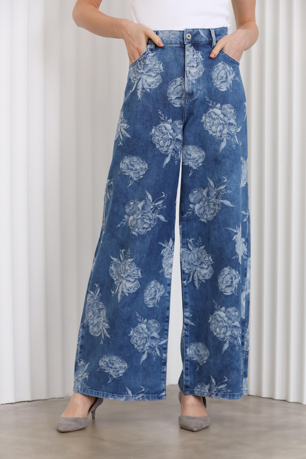 - Дизайн: Джинсы отличаются эксклюзивным цветочным принтом, который добавляет образу женственности и изысканности.