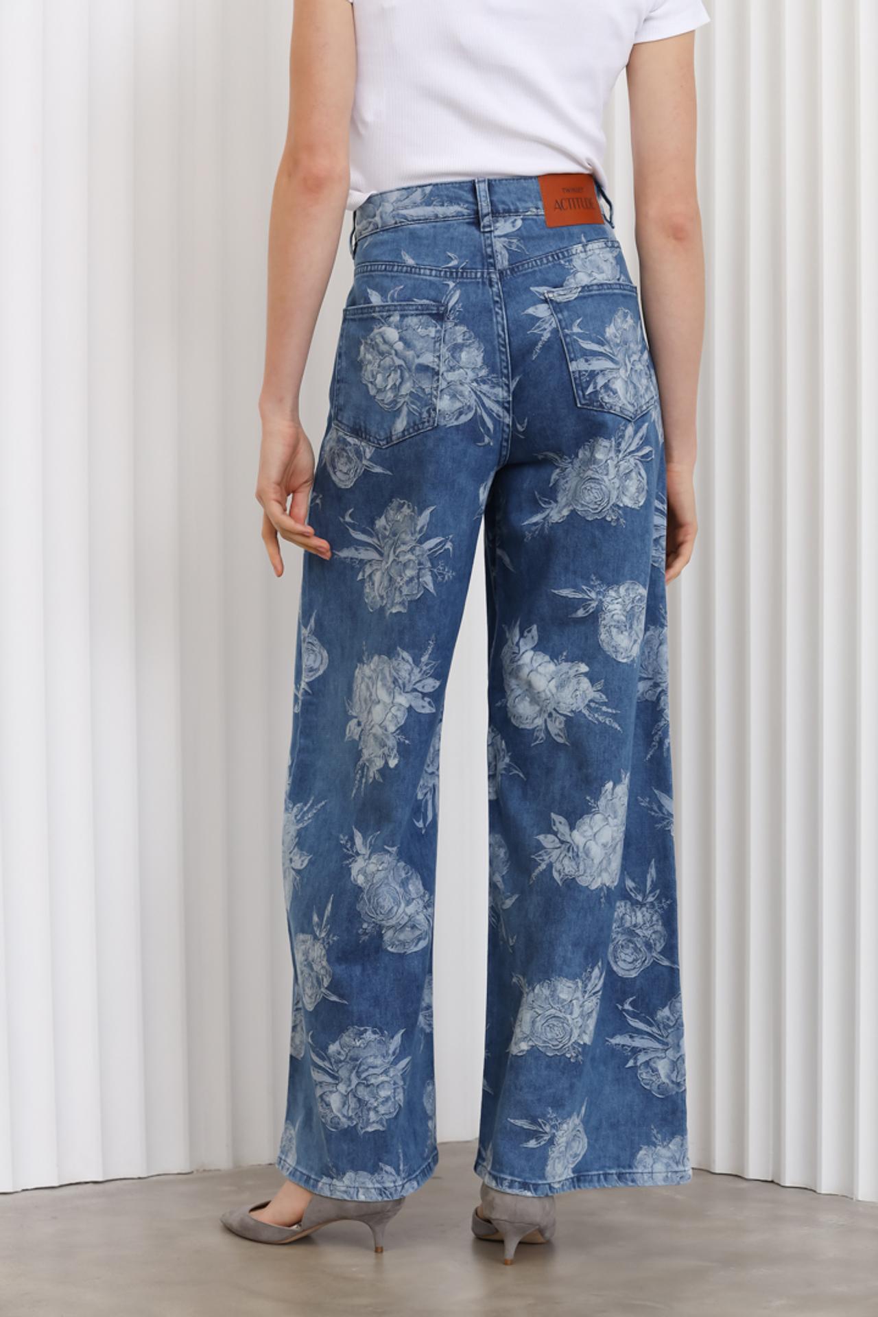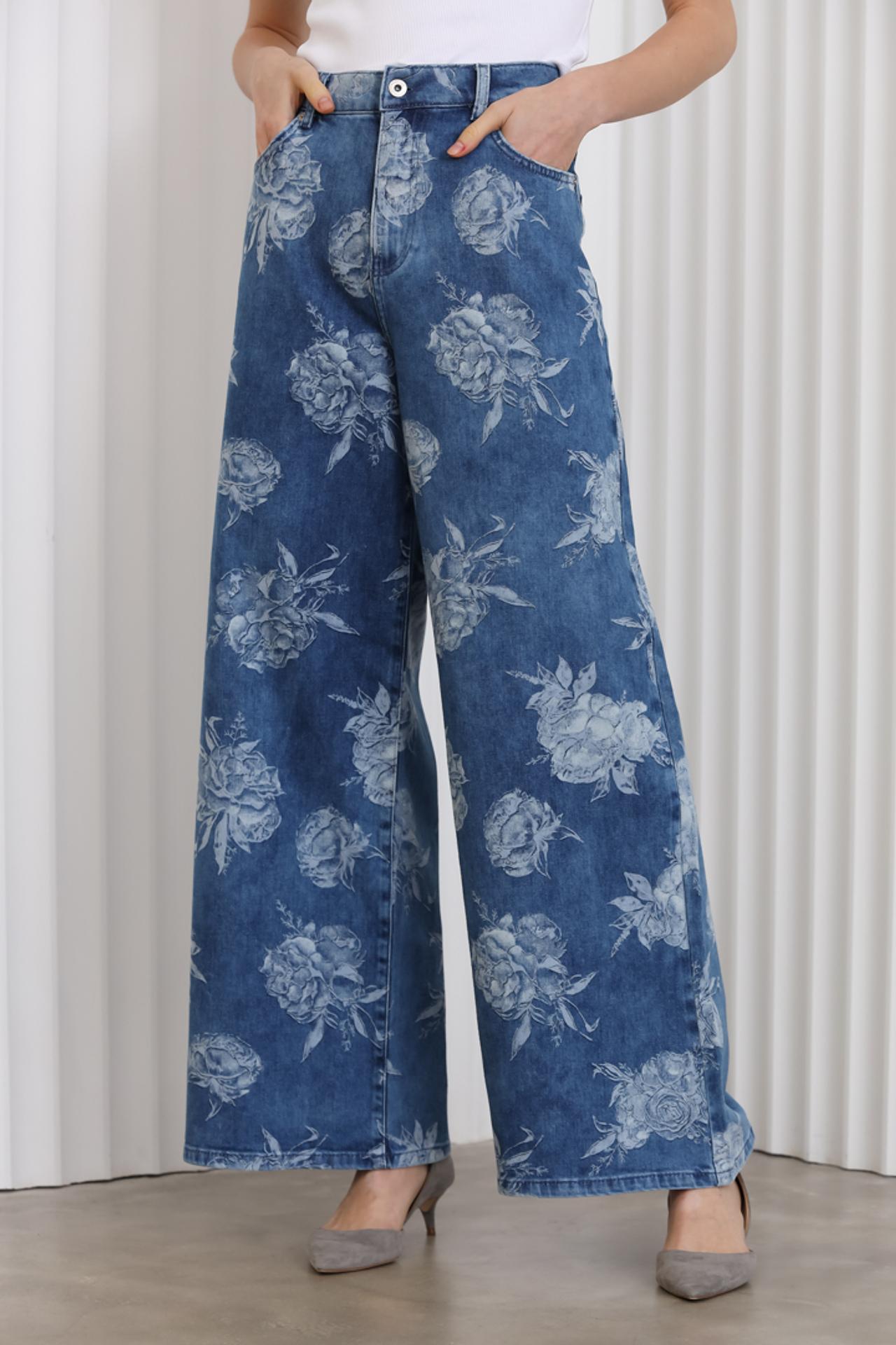 Джинсы Twin Set широкие, синие с цветочным принтом