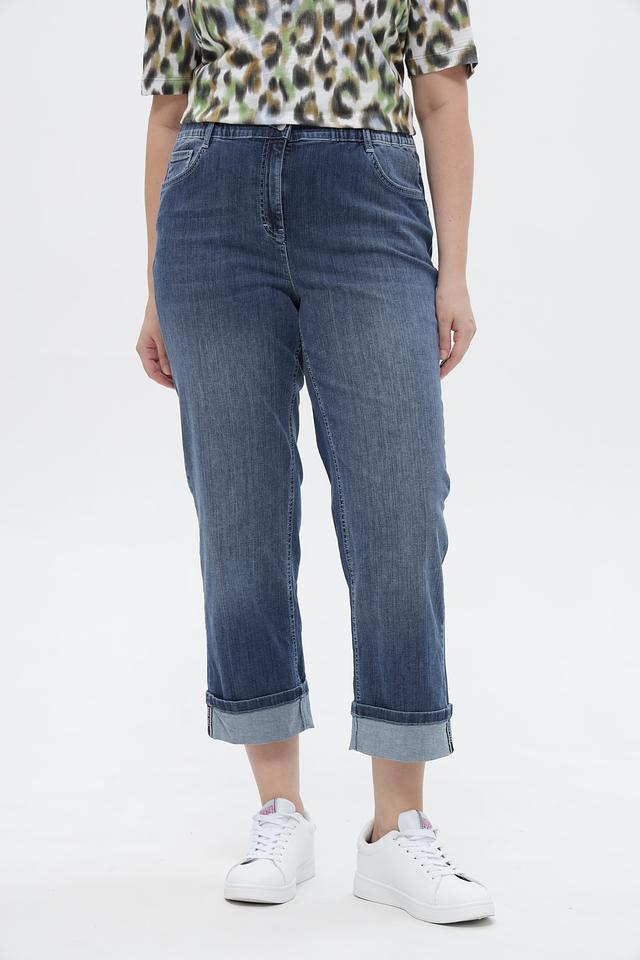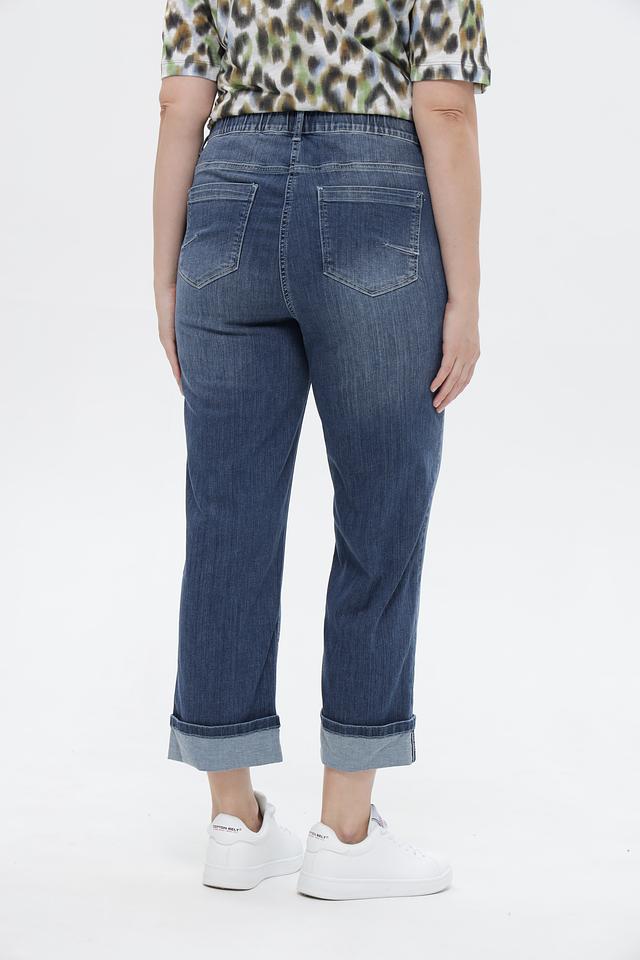 Синие джинсы-капри от Via Appia из комфортного хлопка с эластаном. Модель с эластичным поясом, укороченным силуэтом и подвернутыми штанинами. Состав: хлопок 97%, эластан 3%