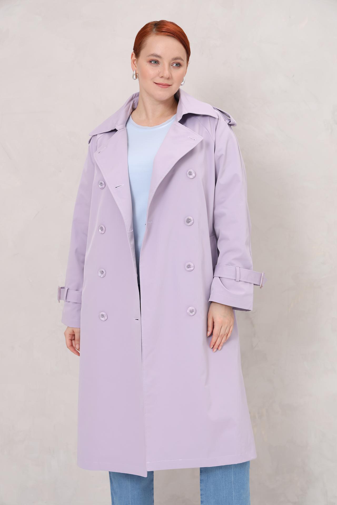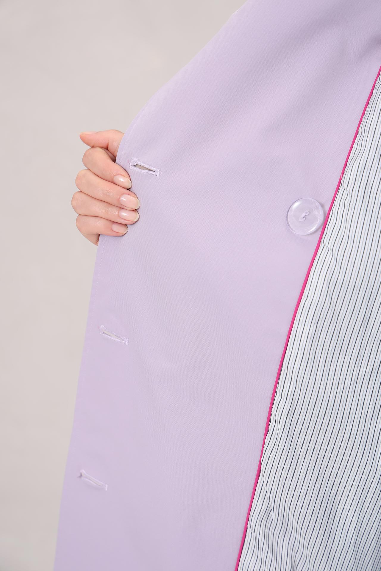- Универсальность стиля. Нежный сиреневый оттенок этого женского плаща легко интегрируется в различные модные ансамбли, от деловых до casual, делая его незаменимой вещью в вашем гардеробе весной и осенью.