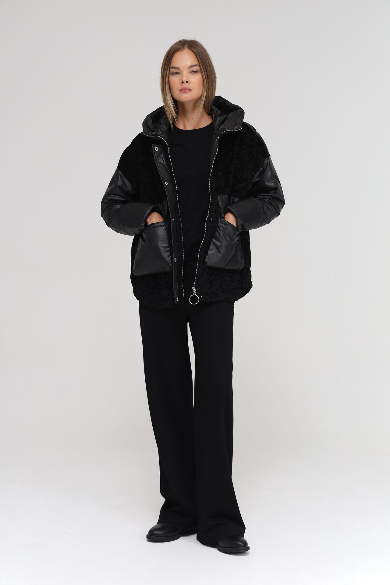 - Дизайн и детали: Сочетание объемных стеганых элементов из глянцевого полиэстера и фактурной шерстяной ткани создает интересный визуальный эффект. Функциональные накладные карманы и объемный капюшон добавляют практичности.