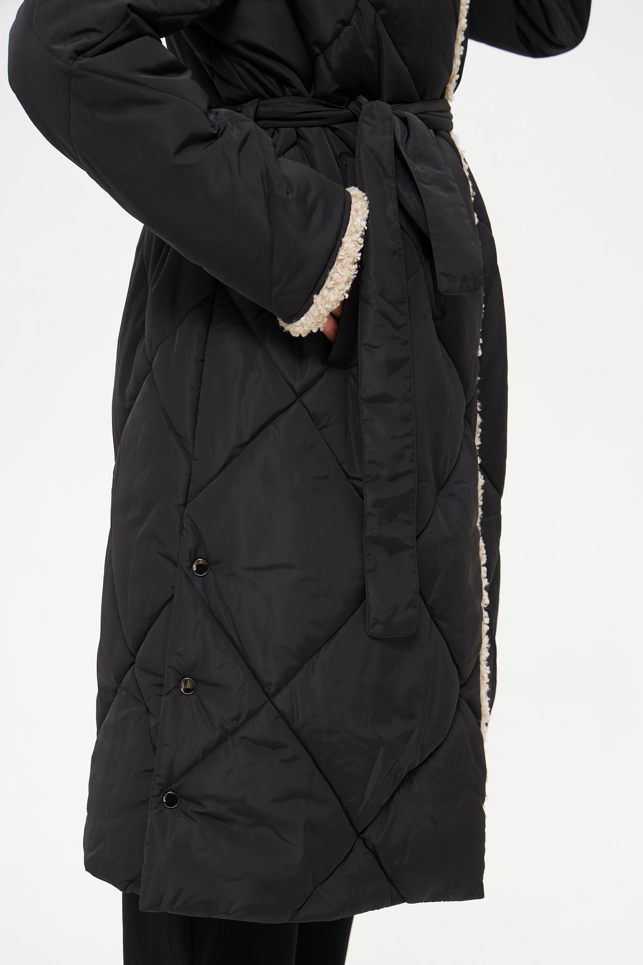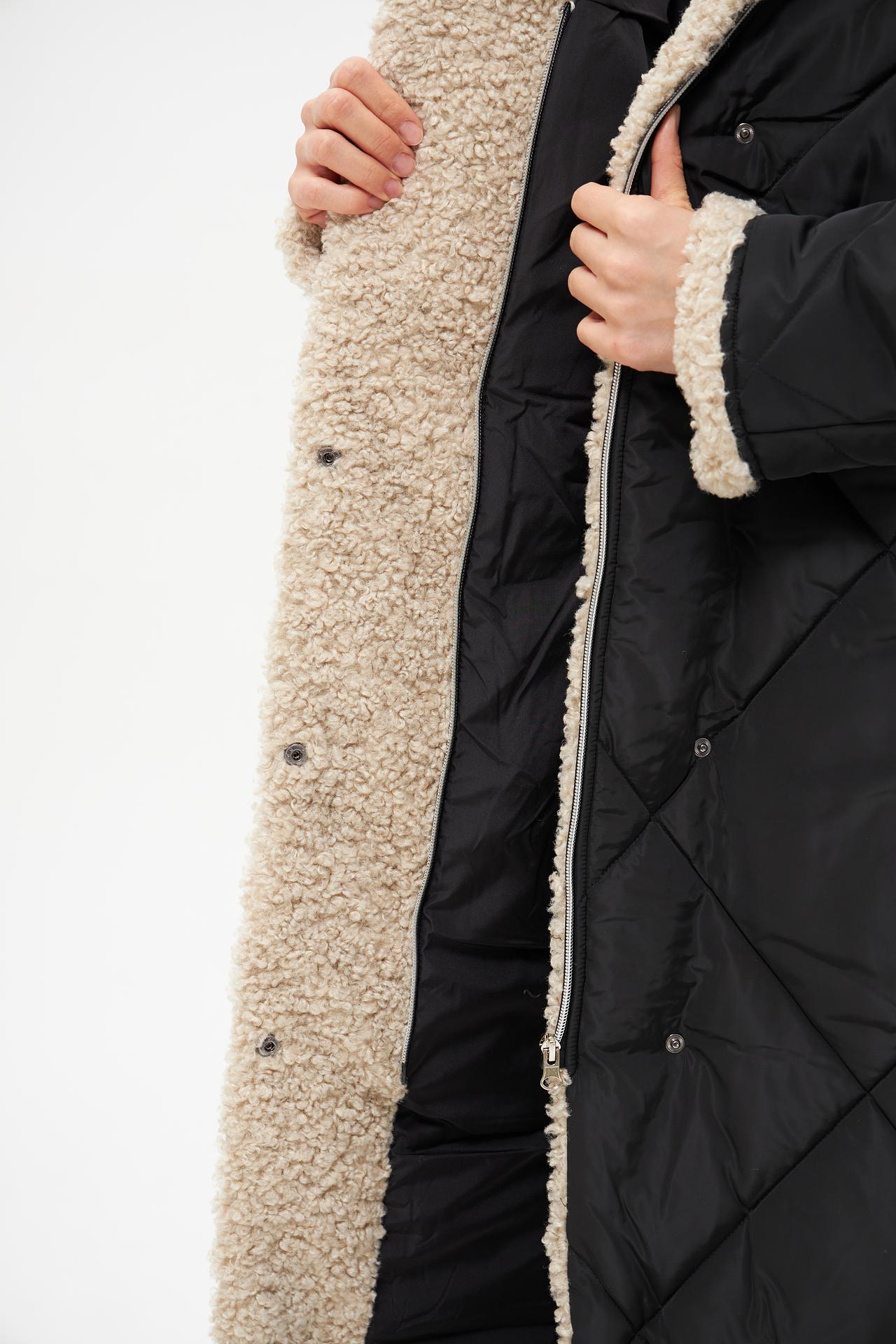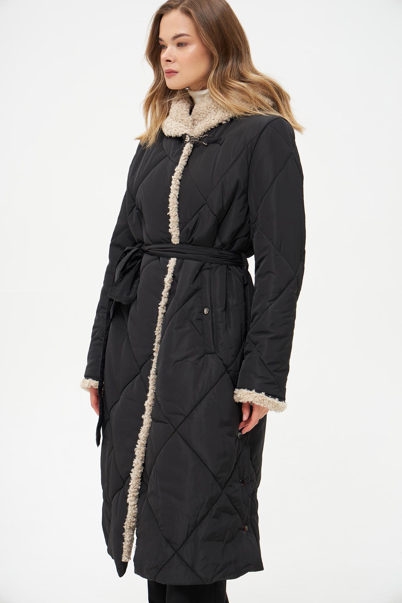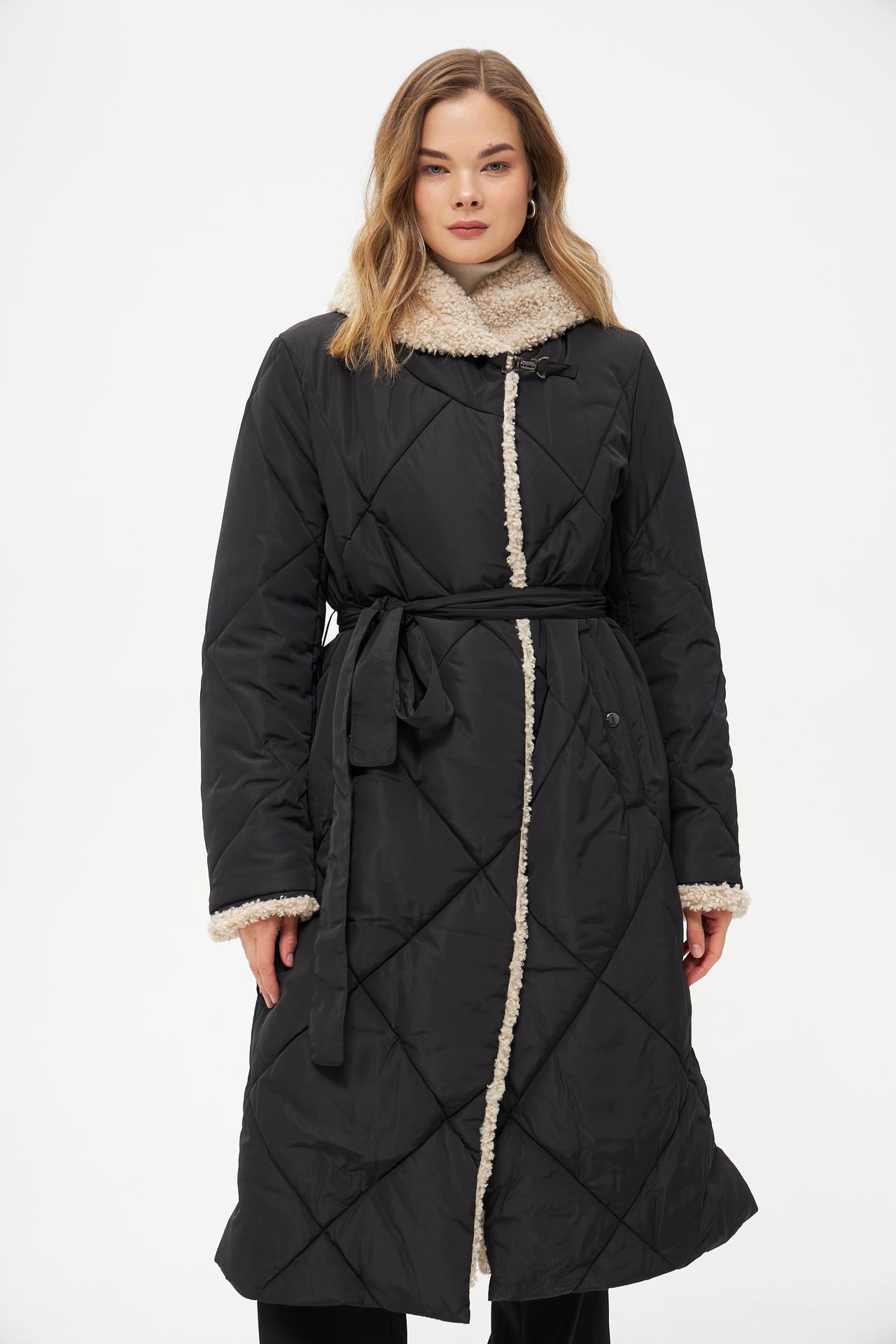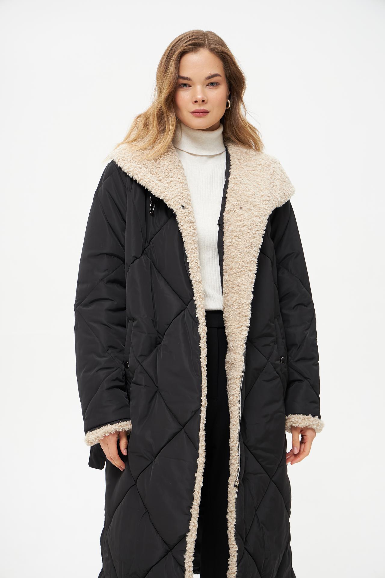 - Дизайн: Оригинальная стёжка ромбами создает выразительную текстуру, а объемный капюшон с отделкой из искусственного меха не только защищает от ветра, но и служит эффектным акцентом. Меховая оторочка по краю застежки добавляет пальто элегантности.
