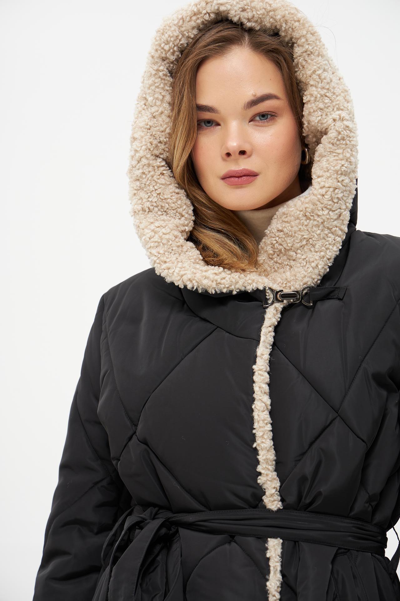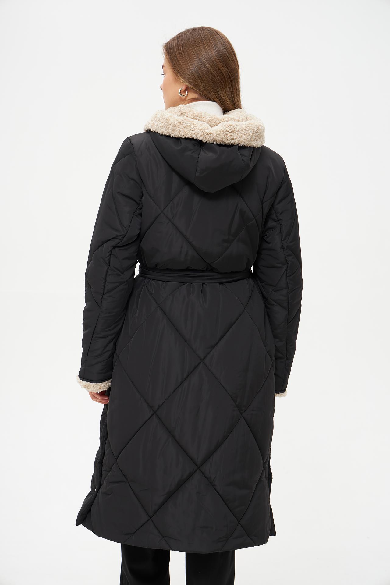 Элегантное пальто Electra style — идеальное решение для современных модниц, ценящих комфорт и стиль. Удлиненный силуэт и геометрический узор стёжки придают изделию утонченный вид, а контрастная меховая отделка капюшона и борта добавляет роскоши. Пояс в комплекте позволяет регулировать посадку по фигуре, подчеркивая вашу женственность.