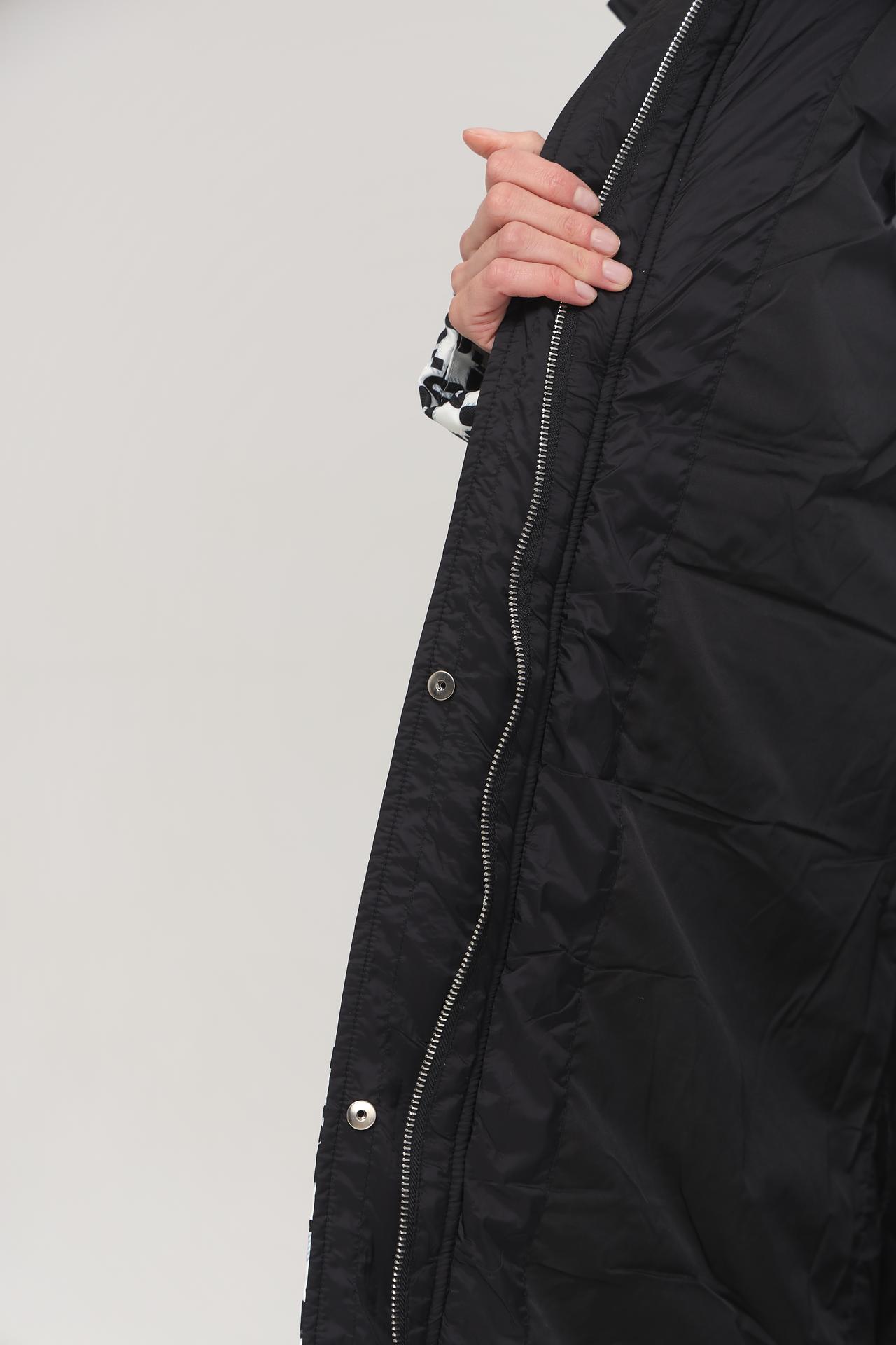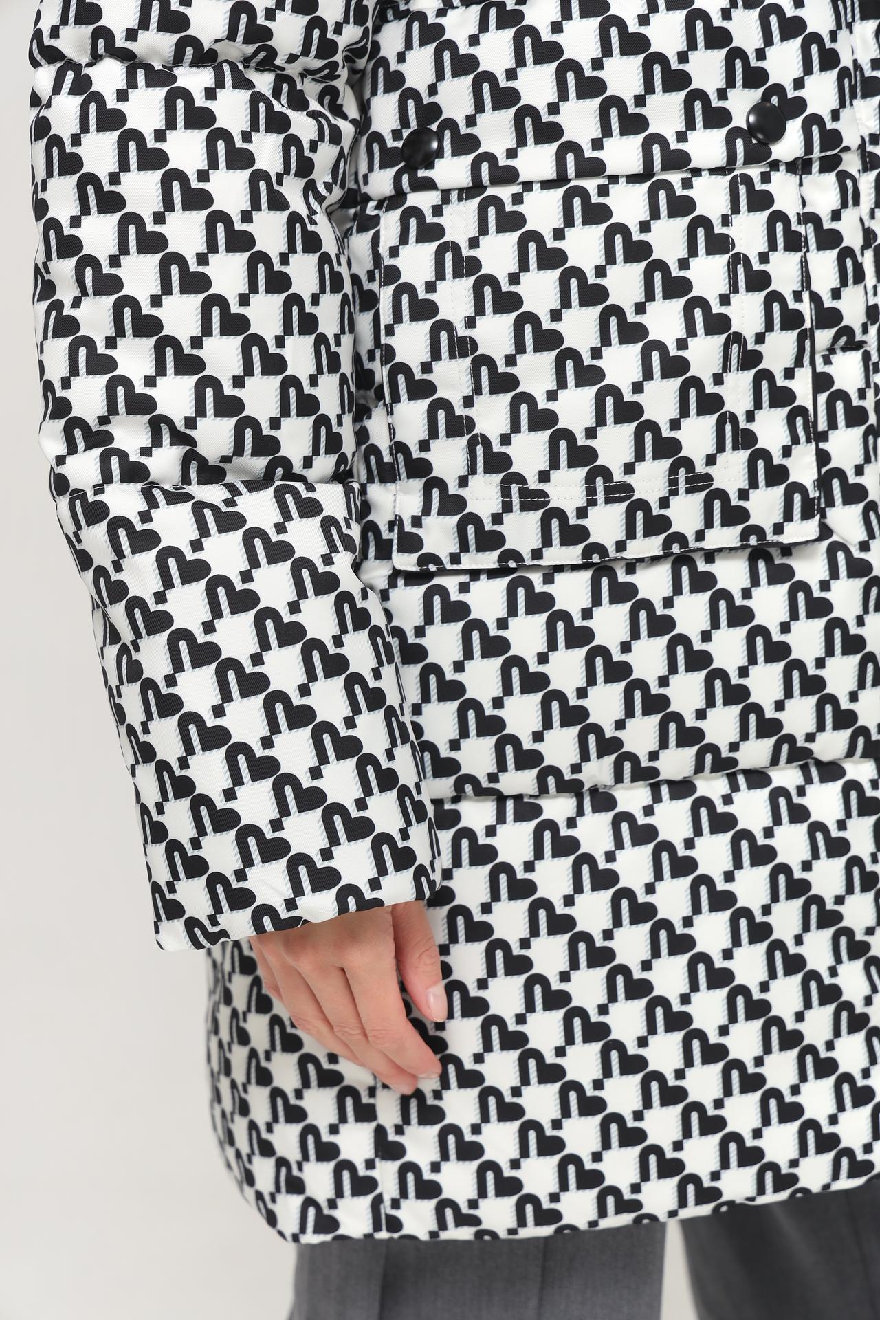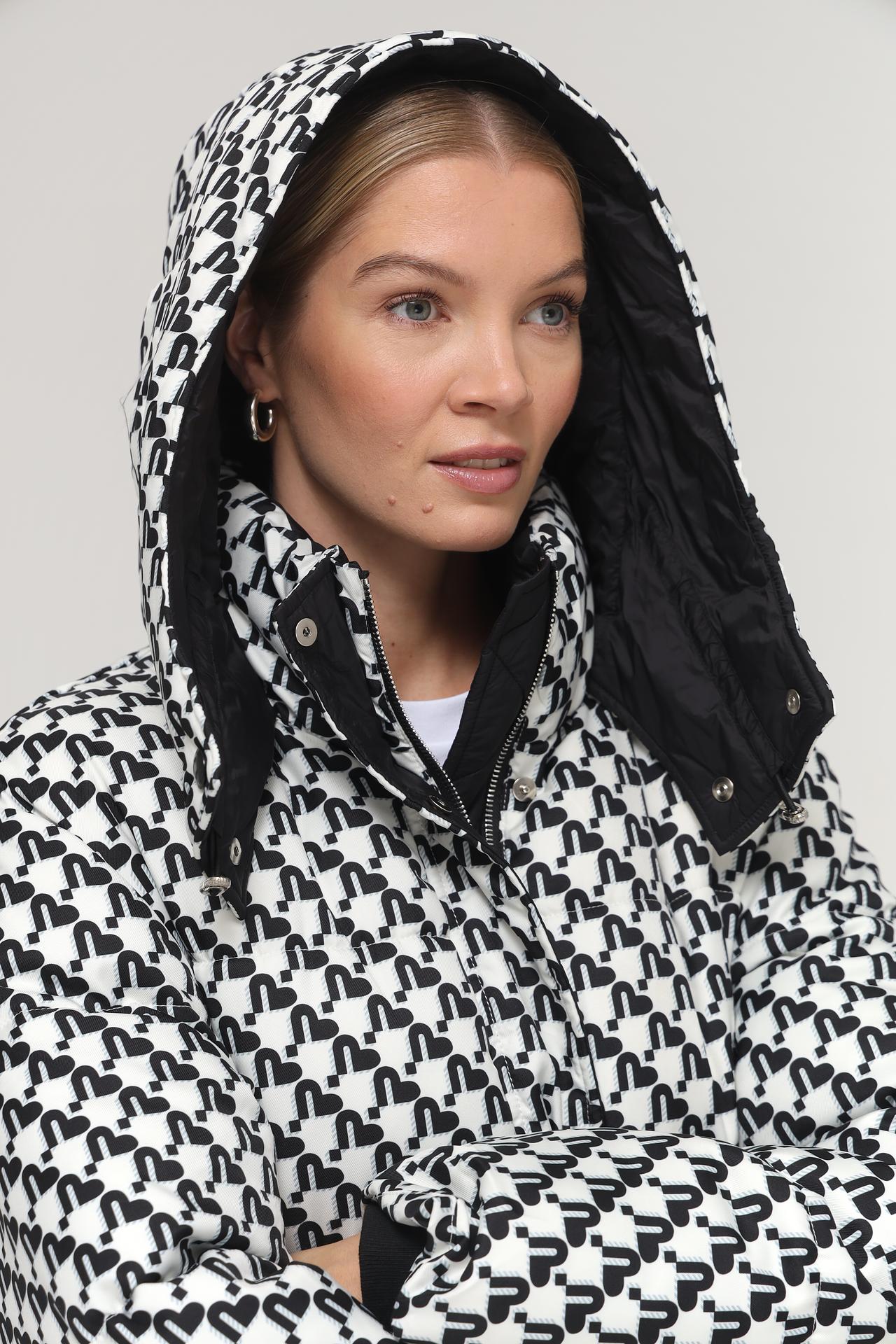 - Стильный дизайн: Чёрно-белый геометрический принт придаёт куртке уникальность и динамичность. Модель легко впишется в городской образ, подчеркивая индивидуальность.
