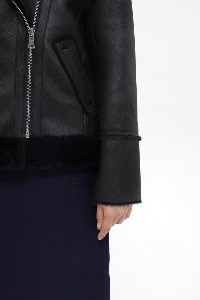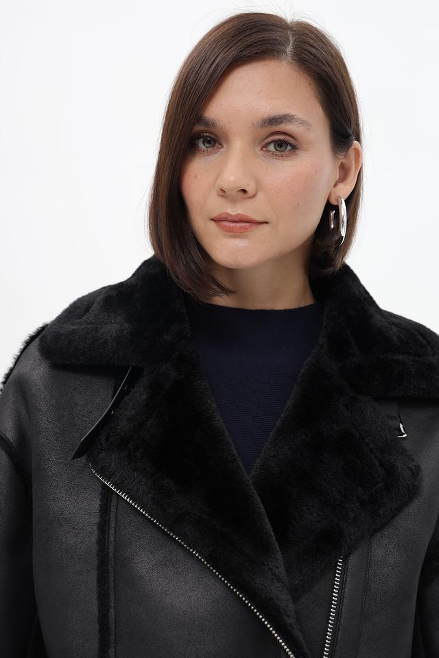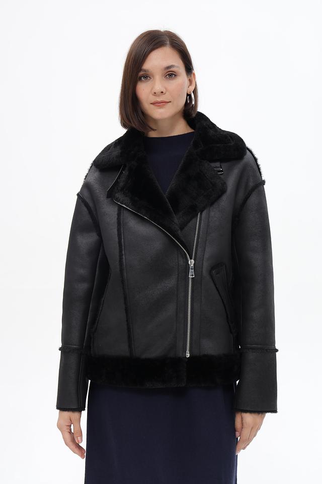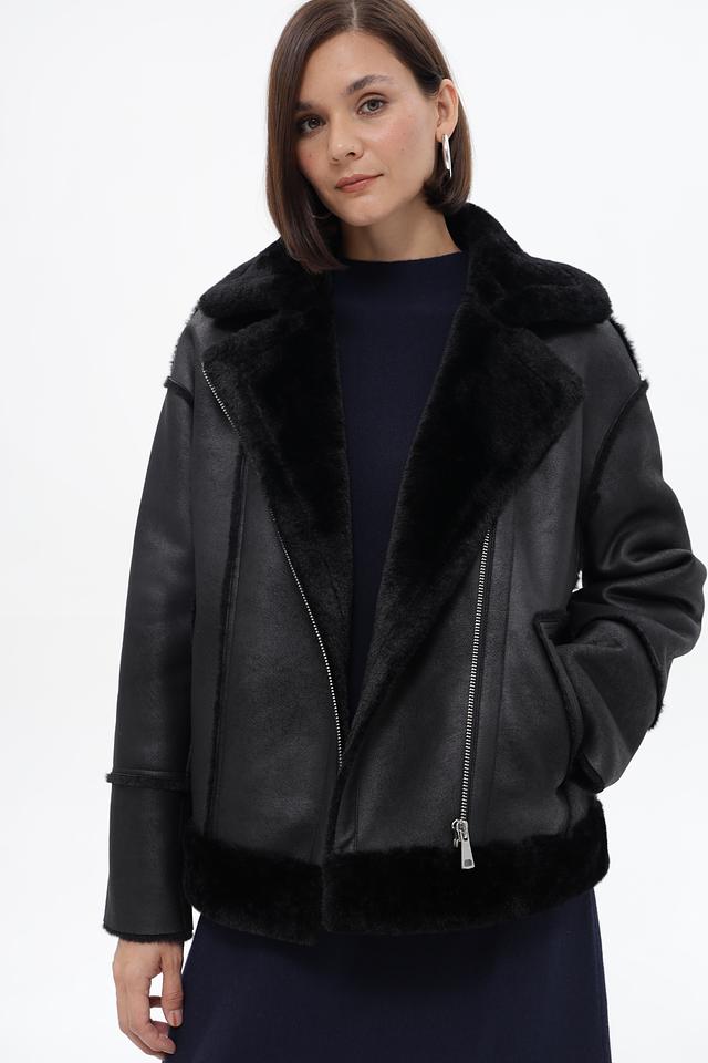 Чёрная куртка-дублёнка от Electra style, выполненная из сочетания шерсти, акрила и вискозы. Модель оформлена меховой отделкой воротника и манжет, застёжка — молния. Удобный и стильный вариант для прохладной погоды. Состав: шерсть 40%, акрил 32%, вискоза 28%