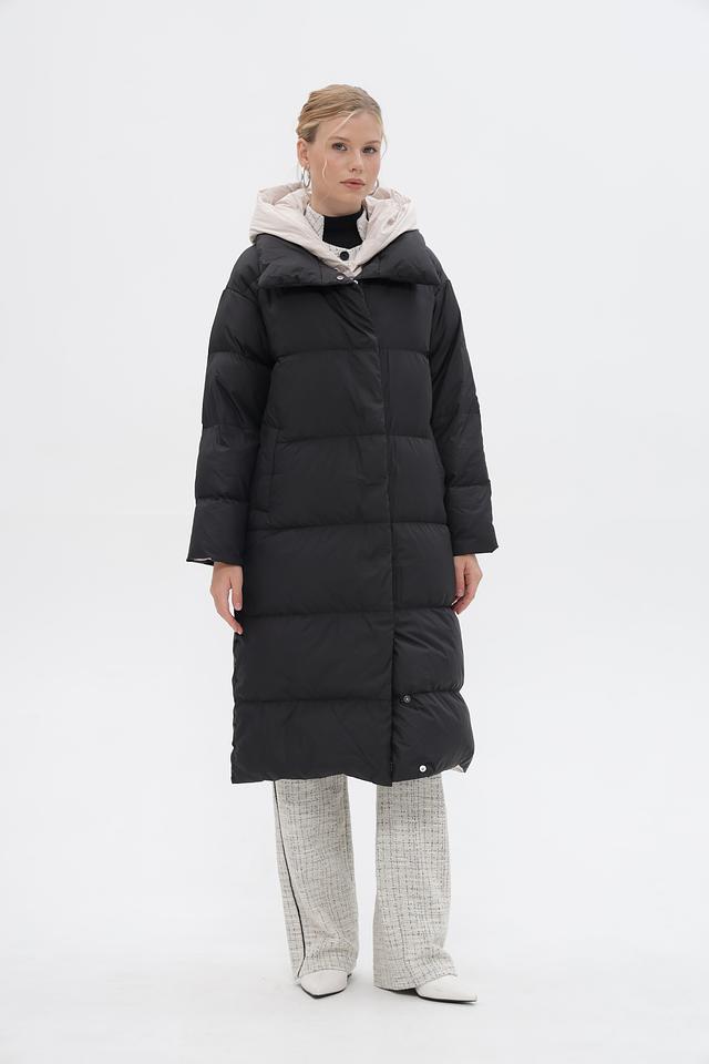 Пальто имеет объёмную стеганую текстуру, которая придает ему современный и стильный вид. Удобный капюшон защитит от ветра и снега, а застежка-молния позволит легко регулировать степень утепления.