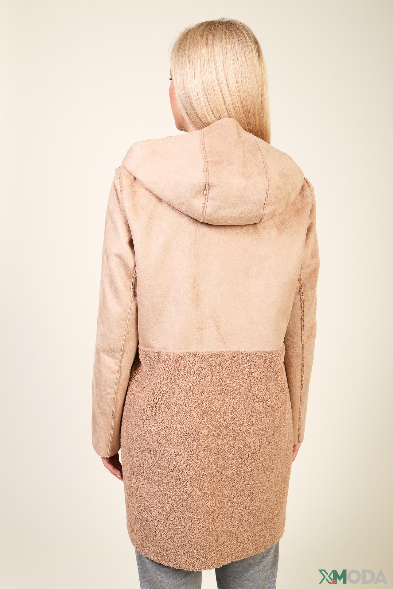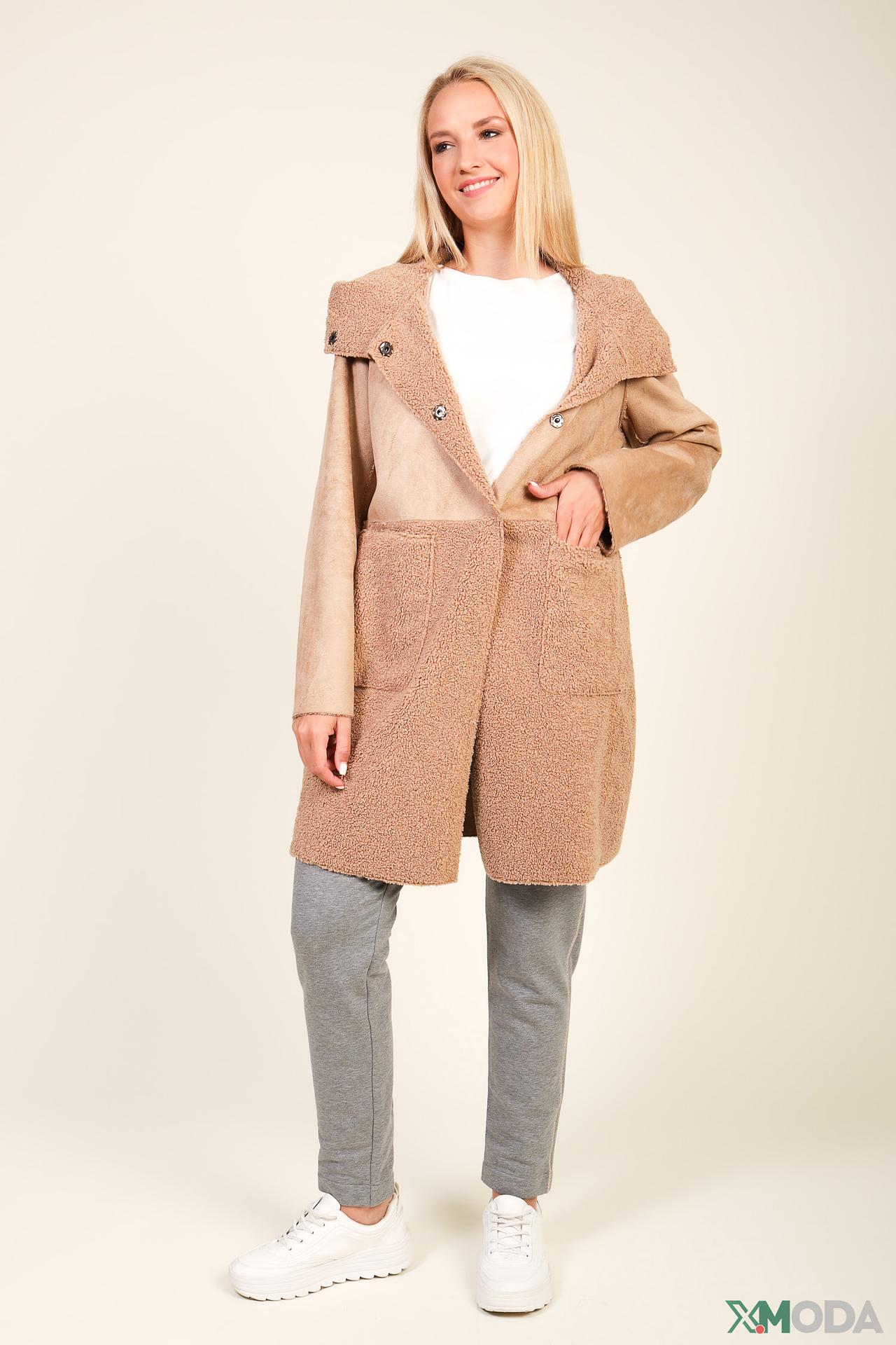 Пальто Elena Miro бежевое комбинированное с капюшоном