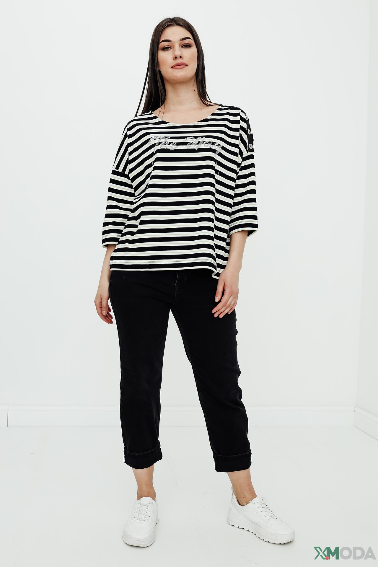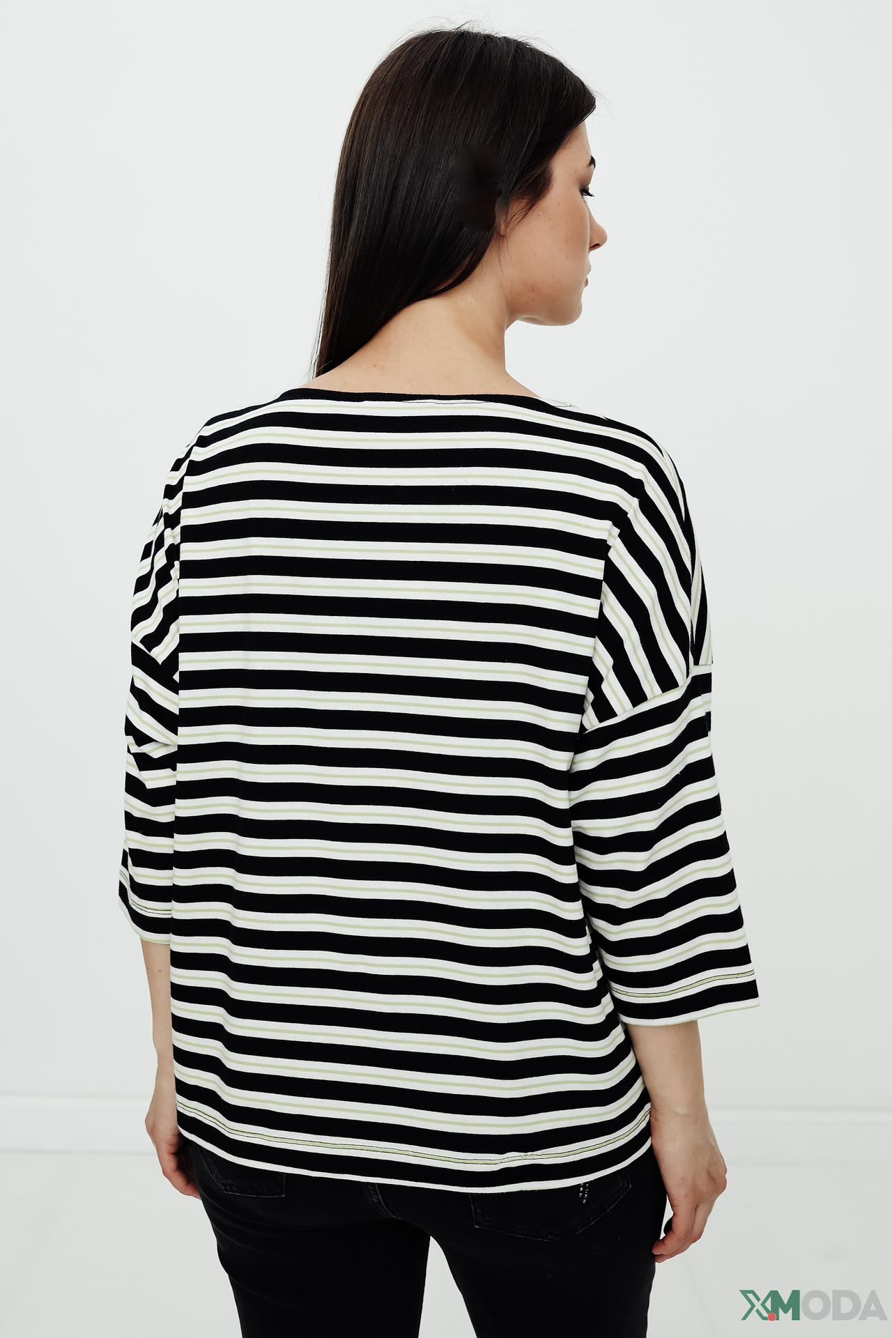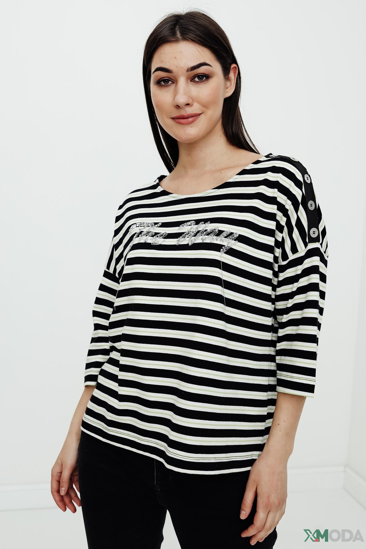 - Дизайн: Классическая полоска в черно-белой гамме дополнена блестящей вышивкой пайетками на груди. Оригинальные пуговицы на плече служат стильным акцентом.