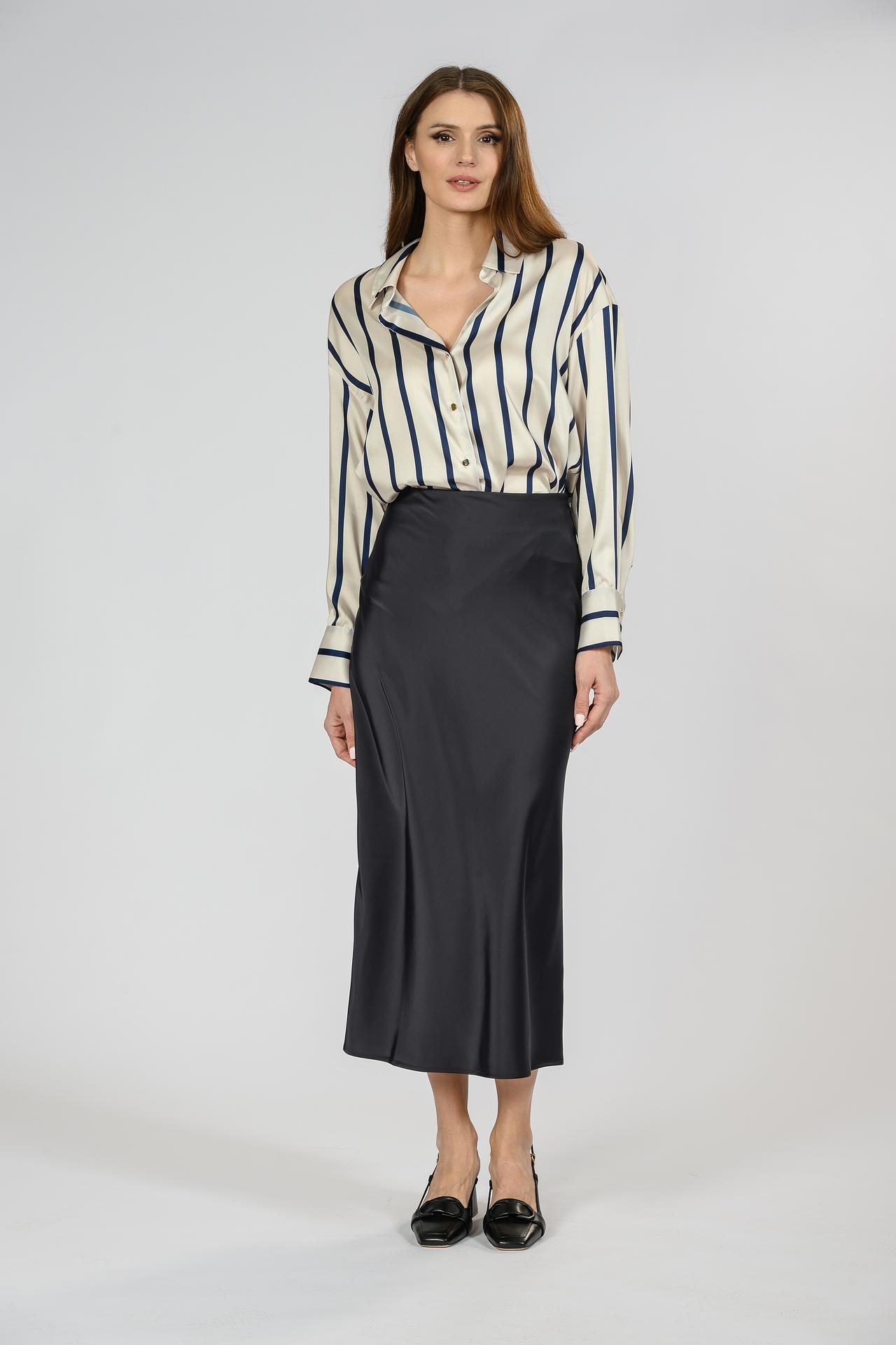 - Дизайн: Классический крой миди с атласным блеском. Юбка прекрасно драпируется, создавая элегантный и утонченный силуэт.