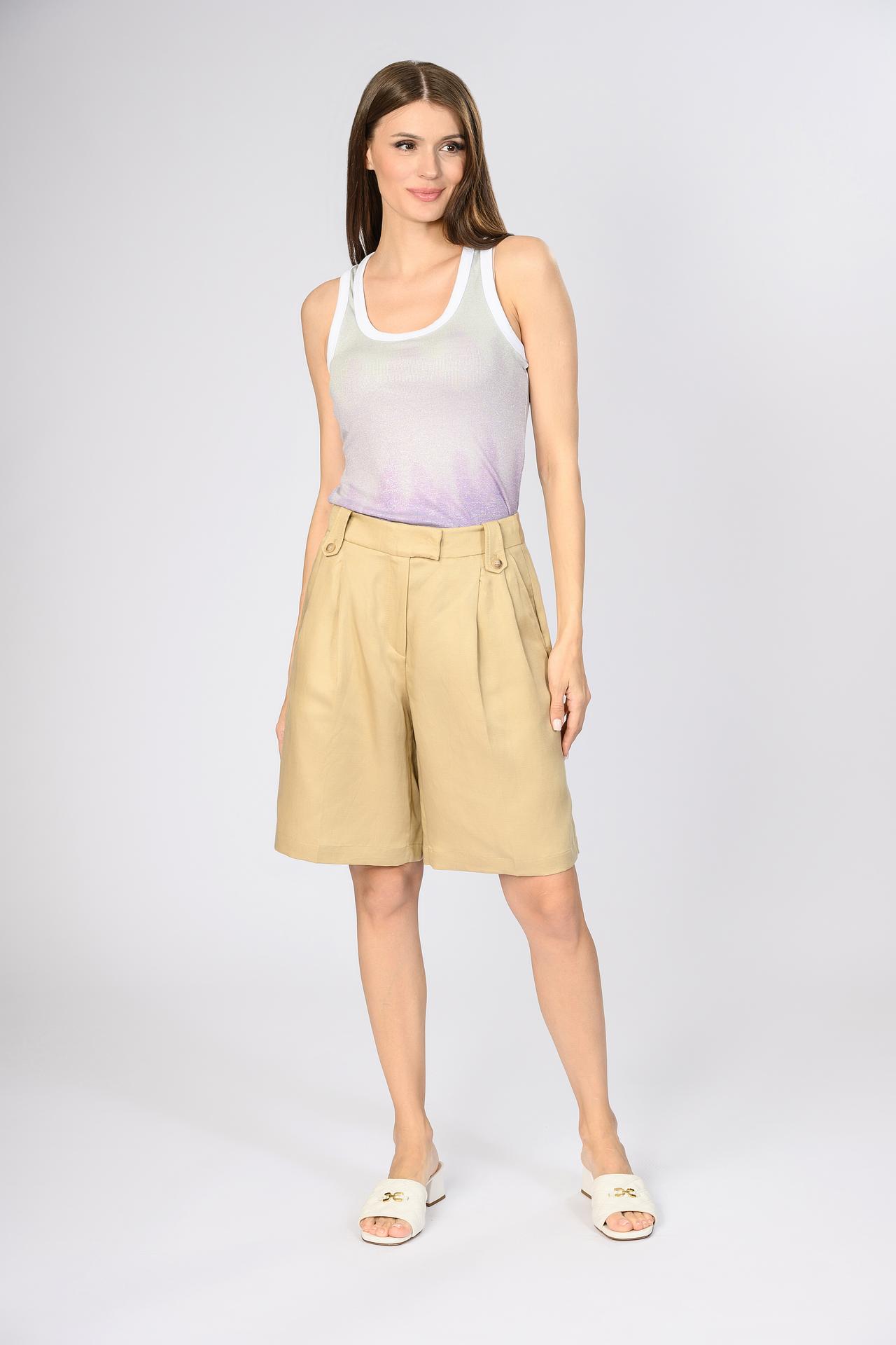 Классические женские шорты Emka бежевого цвета созданы для комфортного летнего сезона. Выполненные из высококачественной смеси льна и тенцеля, эти шорты обеспечивают легкость, воздухопроницаемость и приятные ощущения на теле. Свободный крой и высокая посадка гарантируют безупречную посадку и универсальность в создании стильных летних образов.