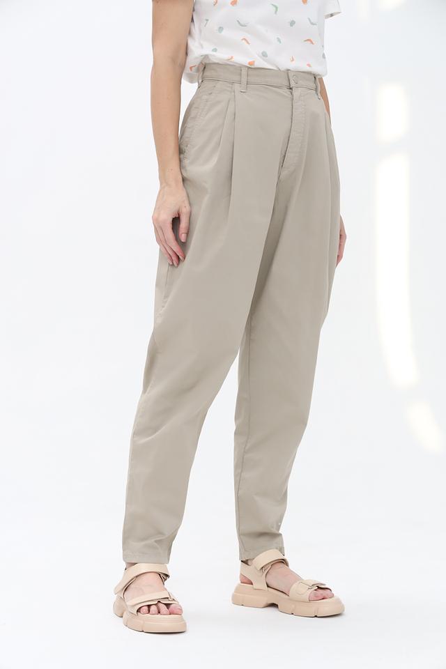 Джинсы имеют классический крой с завышенной талией и широкими штанинами, что обеспечивает комфортную посадку и подчеркивает достоинства фигуры. Передняя часть джинсов оформлена защипами, добавляющими изысканности образу.