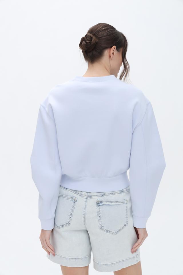 Джемпер имеет удобный крой с круглым вырезом горловины и слегка укороченную длину. Он идеально подходит для создания повседневных образов, сочетаясь с джинсами, шортами или юбками.