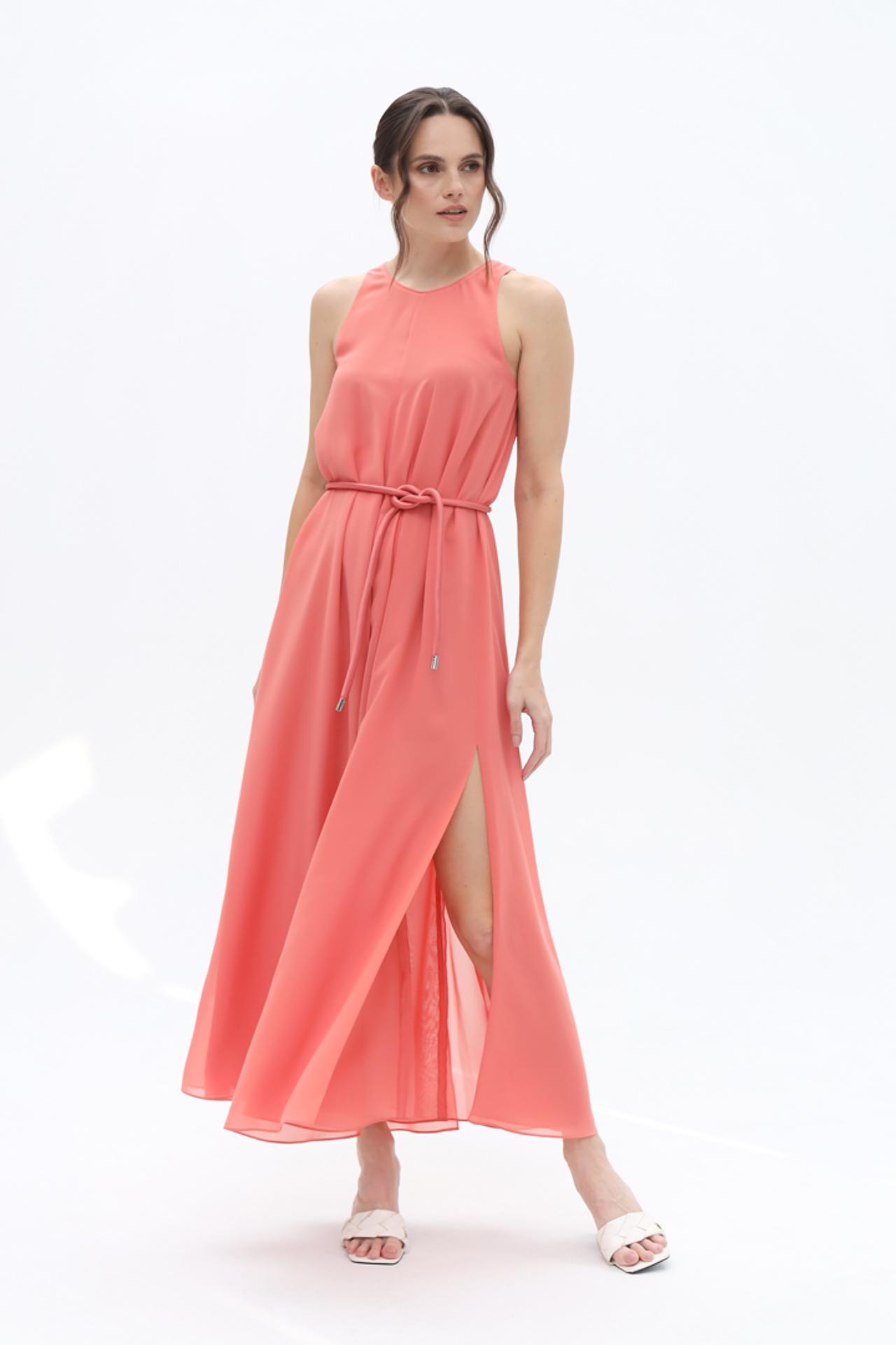 - Цвет. Платье представлено в коралловом цвете, который придаст вашему образу свежесть и яркость.