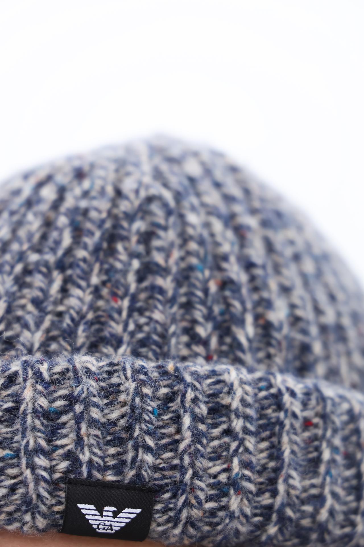 Шапка бини Emporio Armani вязанная синяя с логотипом