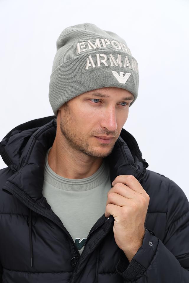 Шапка выполнена в спокойном сером цвете, который легко сочетается с различными стилями одежды. На передней части шапки вышито название бренда Emporio Armani и его логотип, что подчеркивает ее принадлежность к премиальному сегменту.