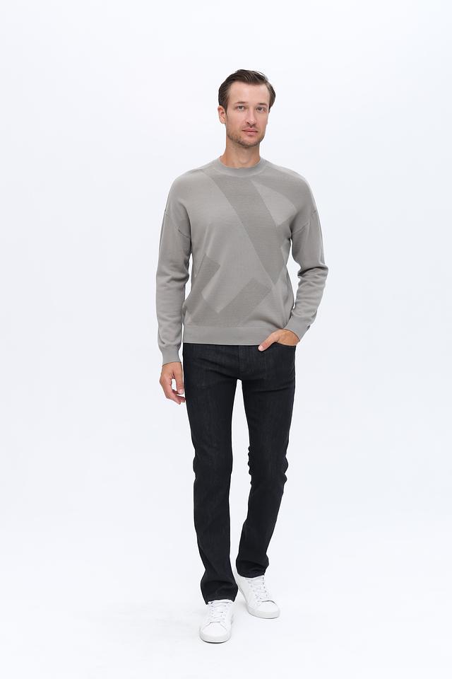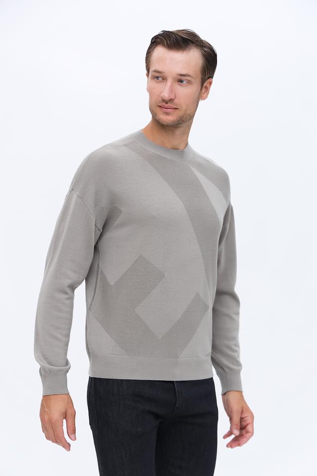 Серый джемпер Emporio Armani из 100% шерсти – это стильное и комфортное решение для создания элегантного образа. Модель имеет круглый вырез и оригинальный геометрический узор на передней части. Состав: шерсть 100%
