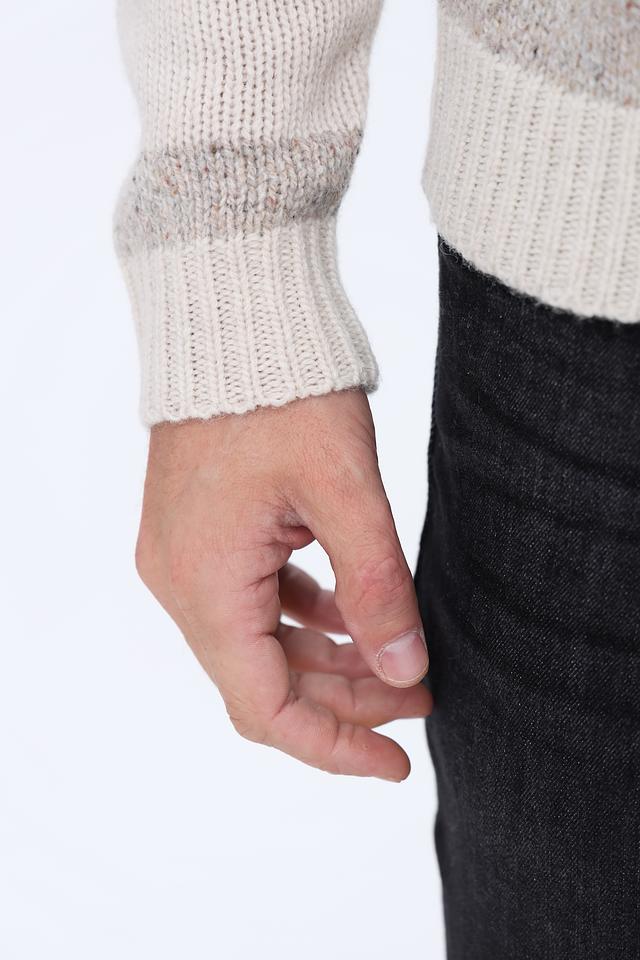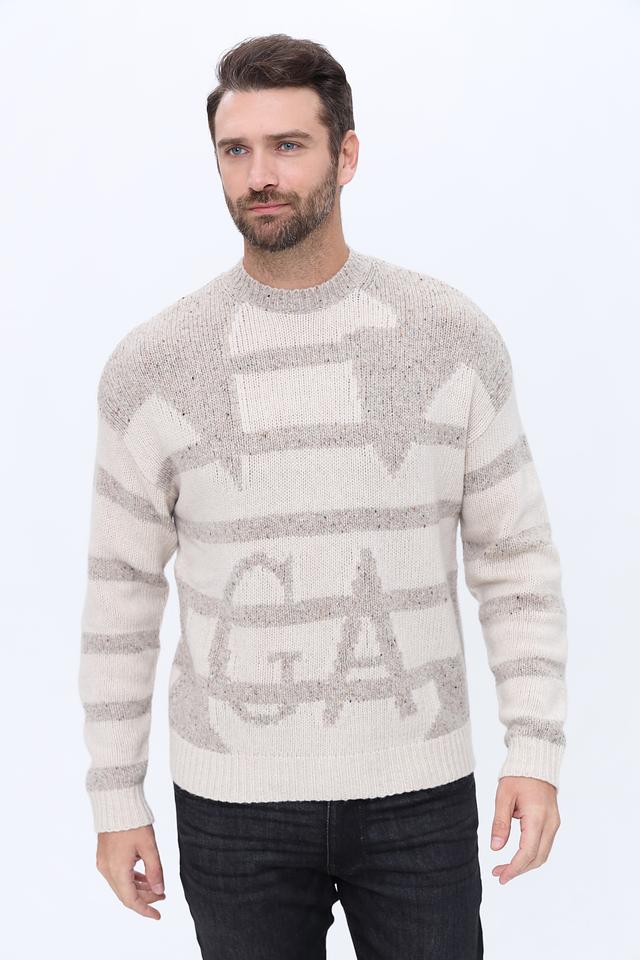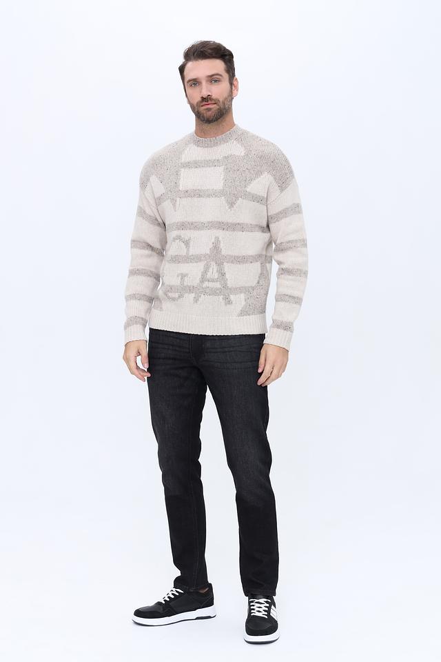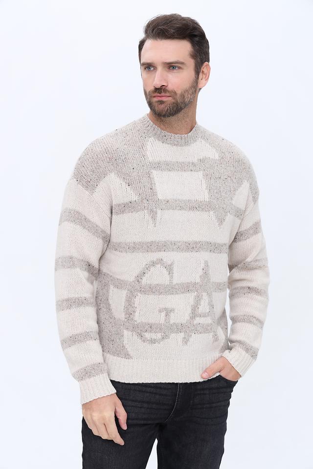 Этот пуловер от Emporio Armani выполнен в бежевом цвете и украшен оригинальным геометрическим узором, который придает ему особый шарм.