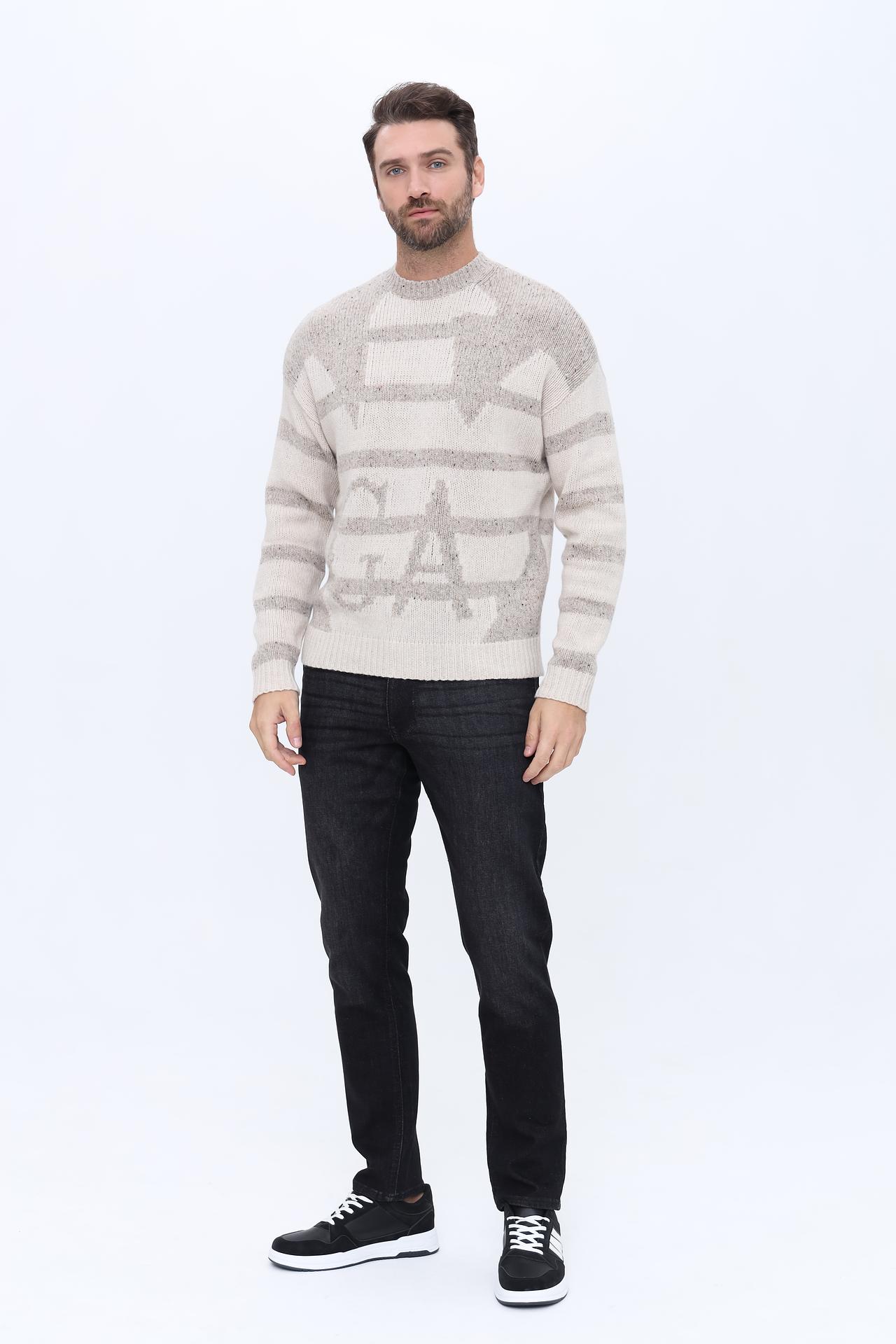 Светлый пуловер Emporio Armani с полосками и логотипом
