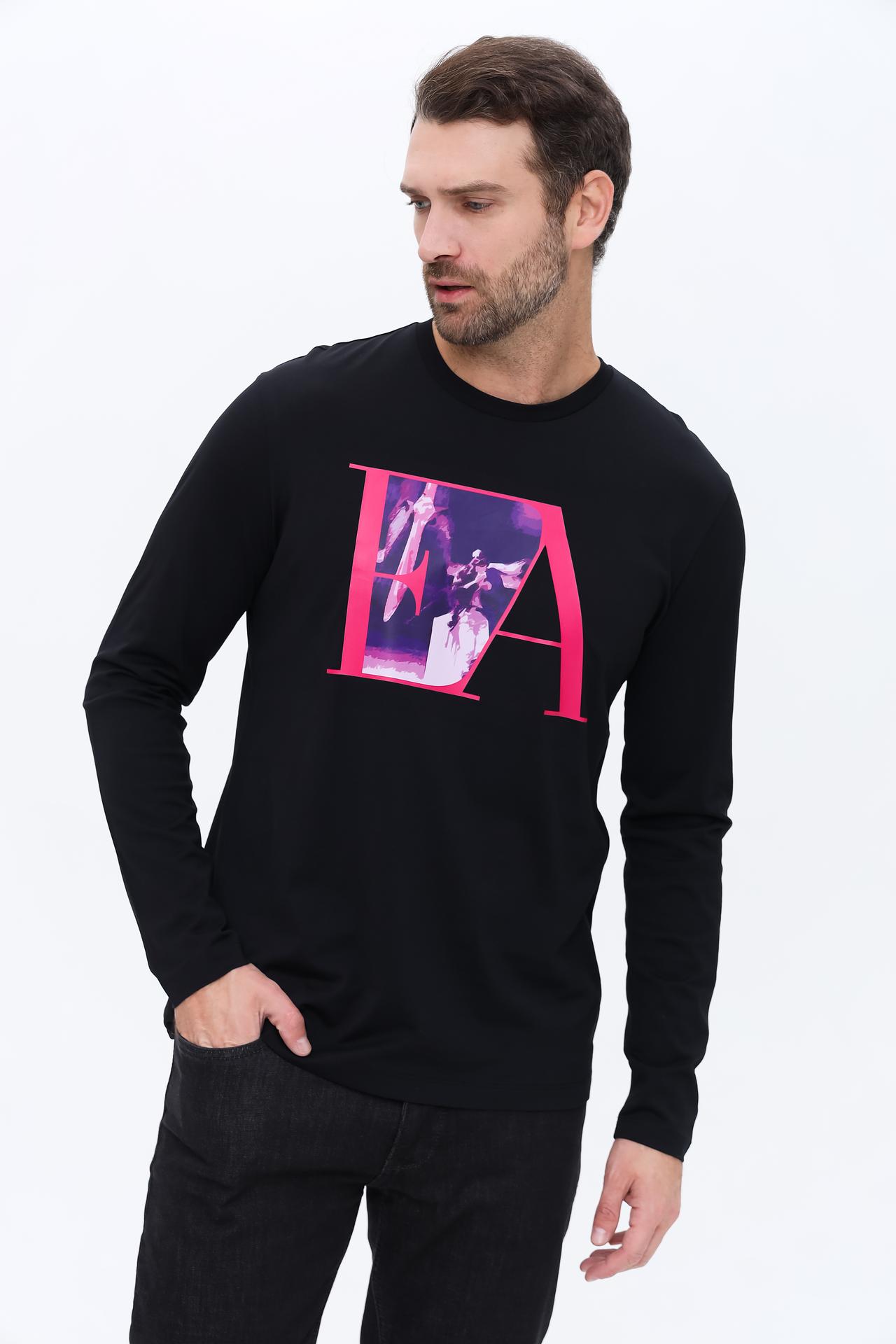 Яркий и запоминающийся принт на груди с логотипом бренда 'EA' в сочетании с абстрактным изображением добавляет изделию индивидуальности и подчеркивает ваш утонченный вкус. Этот лонгслив отлично подойдет для создания как расслабленных, так и более продуманных образов.