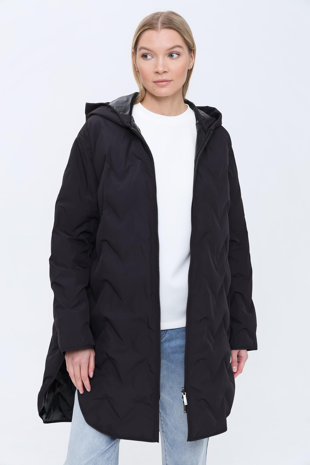 Пальто выполнено из 100% полиэстера, что обеспечивает его износостойкость и легкость в уходе. Оригинальная стежка в виде зигзага придает изделию особую изысканность и объем. Свободный крой гарантирует комфорт и свободу движений, а наличие капюшона защитит от непогоды.