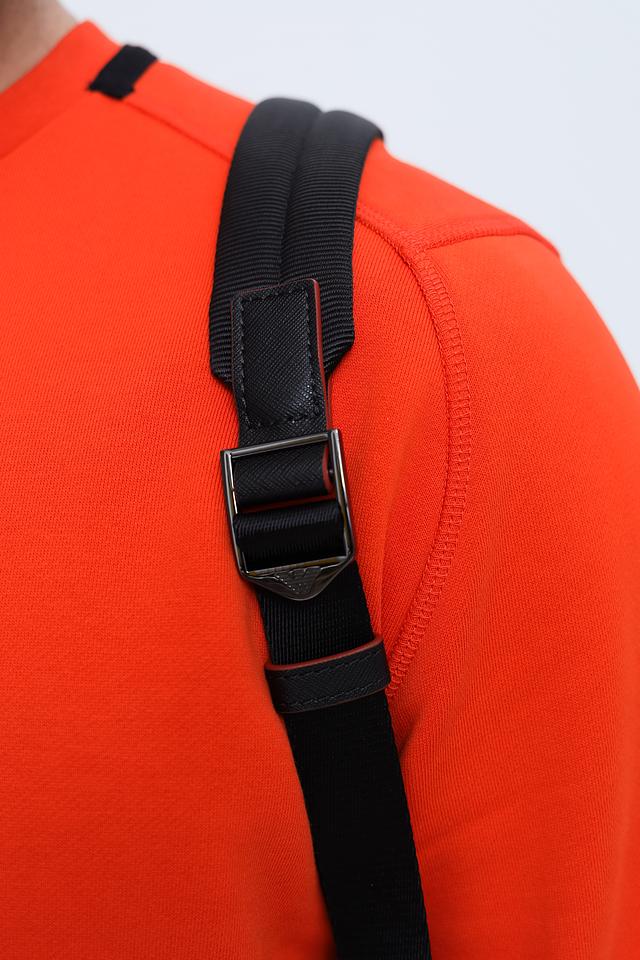 Отличительной особенностью рюкзака является контрастная красная отделка, которая добавляет ему динамичности и индивидуальности. Логотип бренда, выполненный в виде эмблемы, подчеркивает высокое качество и престижность аксессуара.