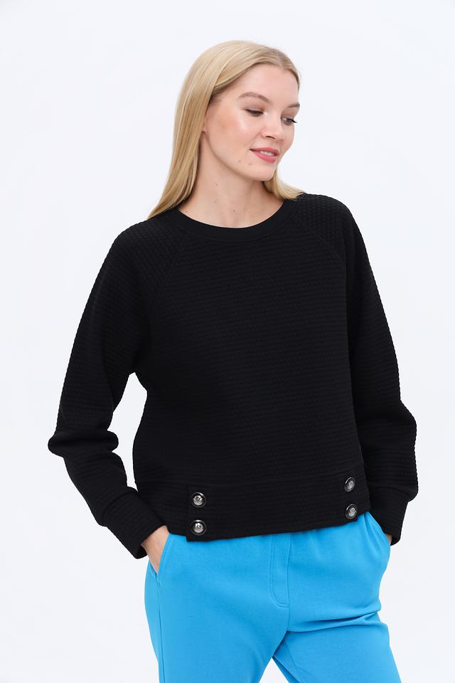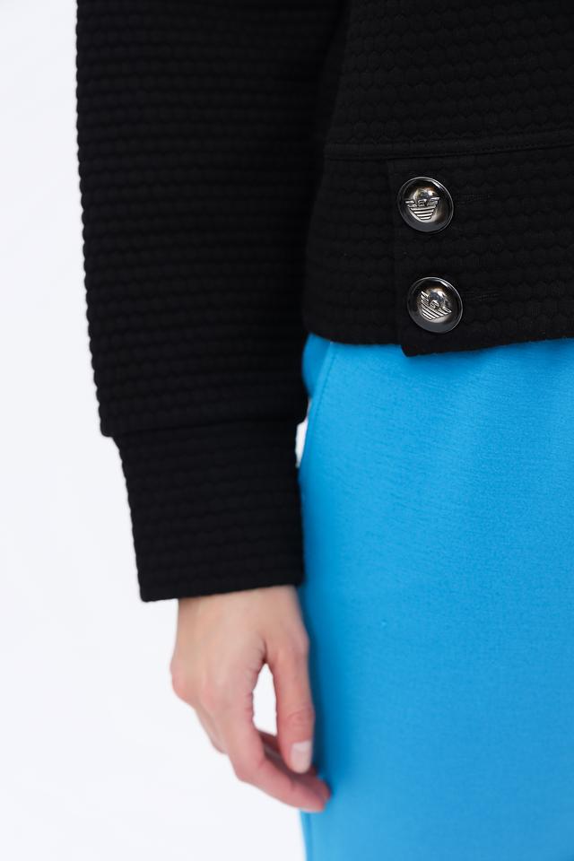 Чёрный джемпер от Emporio Armani с округлой горловиной и декоративными пуговицами. Изготовлен из мягкого трикотажа с рельефной фактурой, обеспечивающей комфорт и стильный внешний вид. Состав: акрил 38%, хлопок 33%, полиамид 29%
