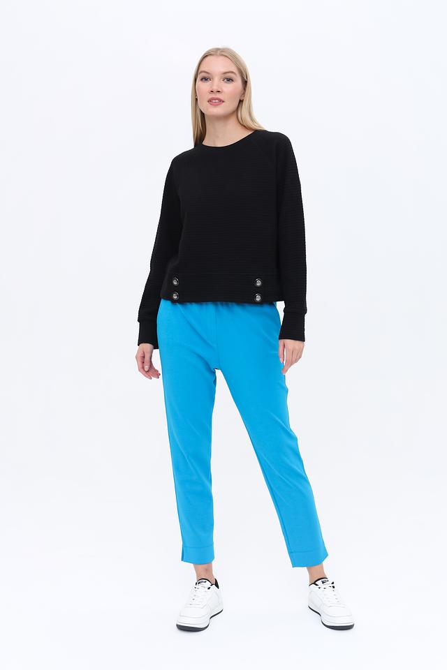 Джемпер имеет округлую горловину и длинные рукава. Особый акцент сделан на декоративные пуговицы на плечах, которые придают модели оригинальность и изысканность.