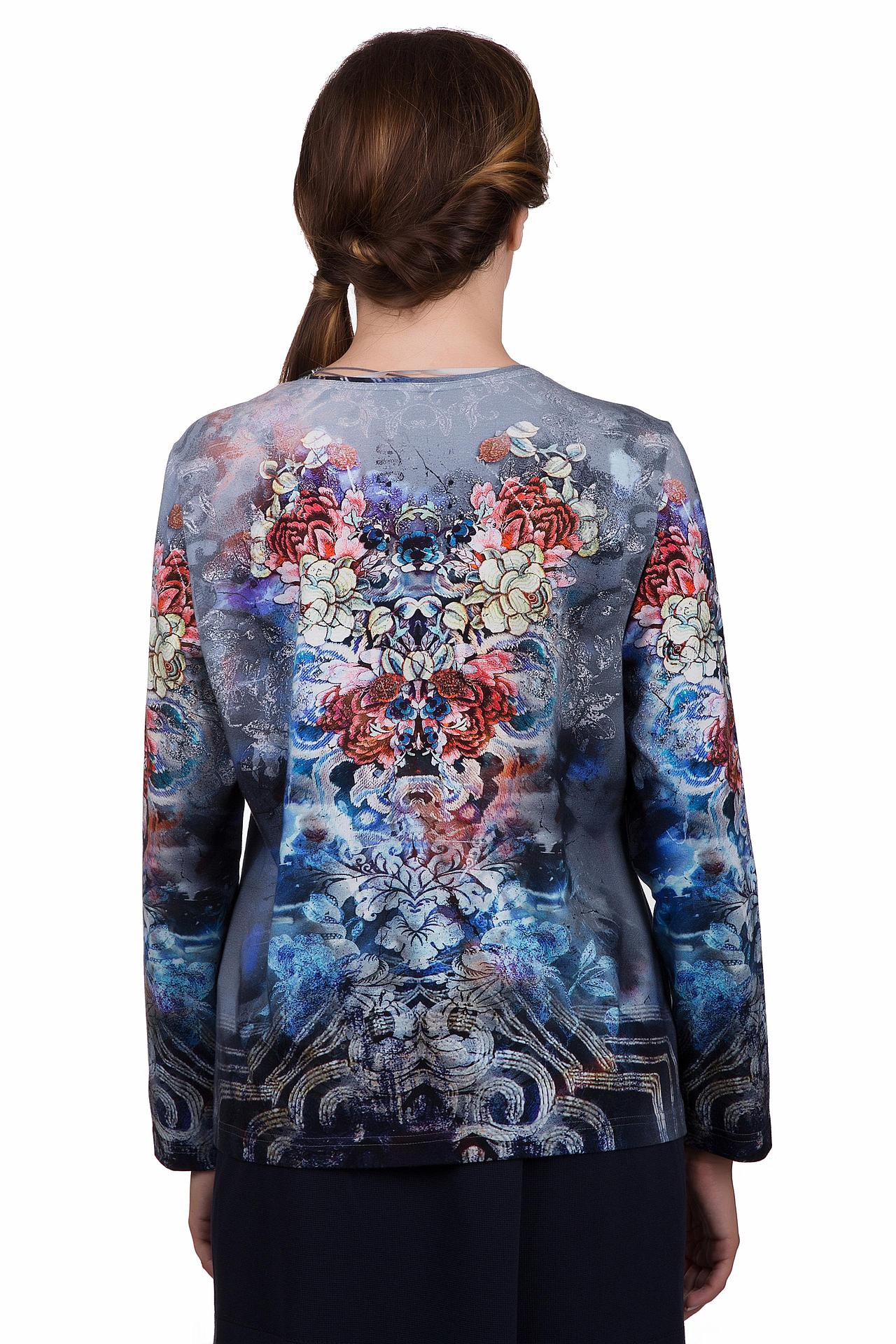 - Дизайн: Оригинальный цветочный принт, украшающий переднюю и заднюю части блузы, придает изделию особую выразительность и привлекательность. Яркие краски и детализированный узор создают эффектный акцент.