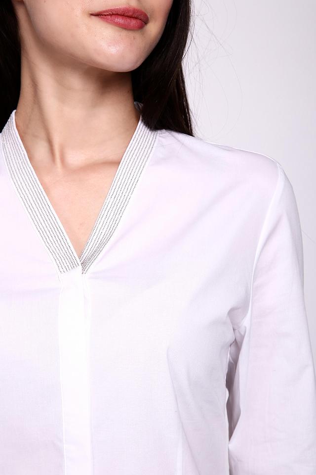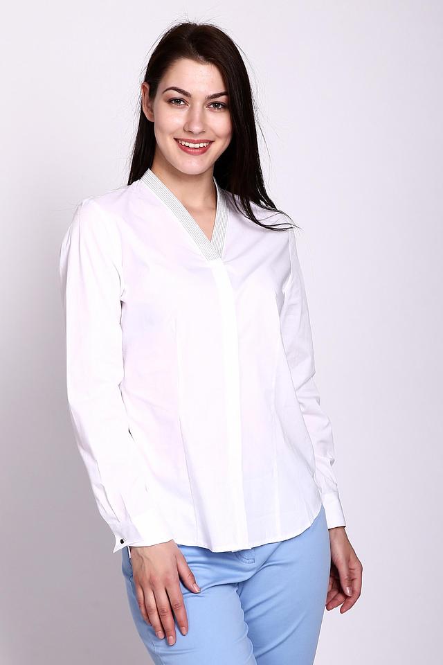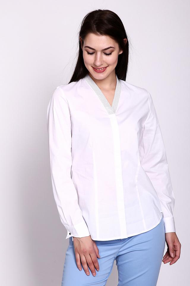 Блуза Erfo белая с V-образным вырезом и серой отделкой