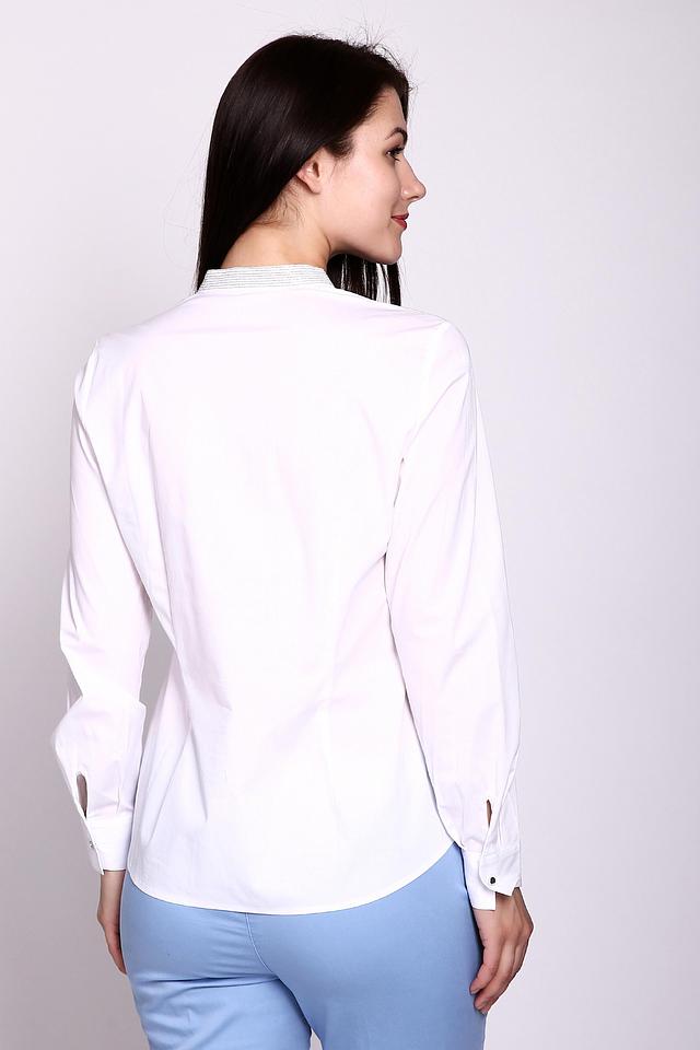 - Классический дизайн: Белоснежная женская блузка с длинными рукавами и изящным кроем, идеально подходящая для создания стильного офисного или элегантного повседневного образа. Подчеркивает универсальность и утонченность.