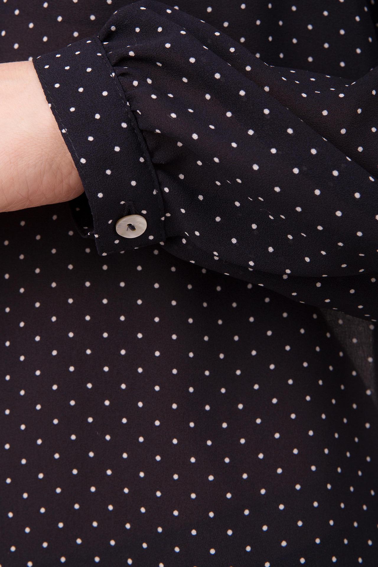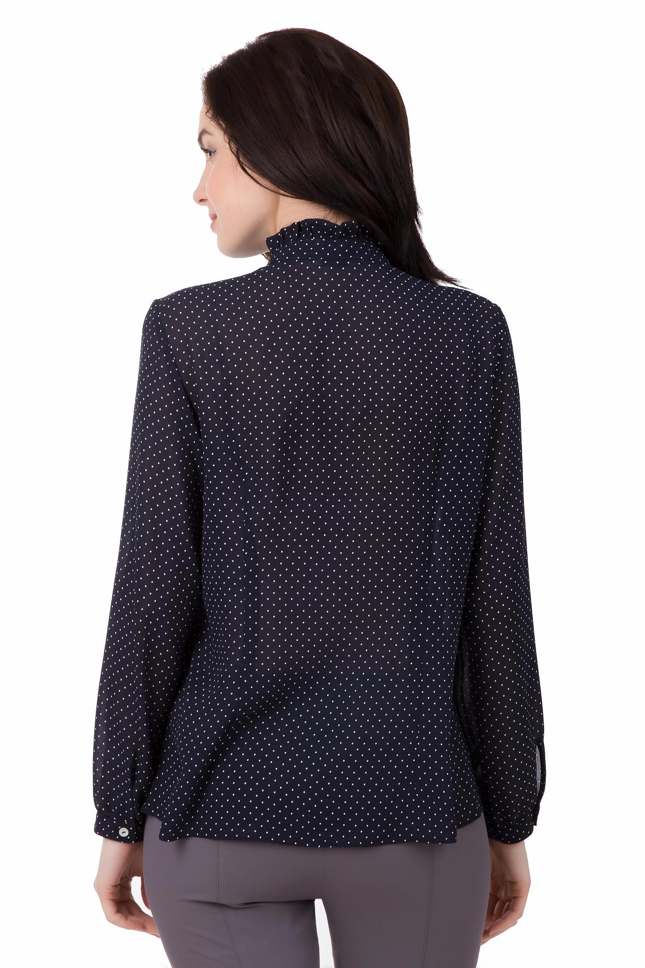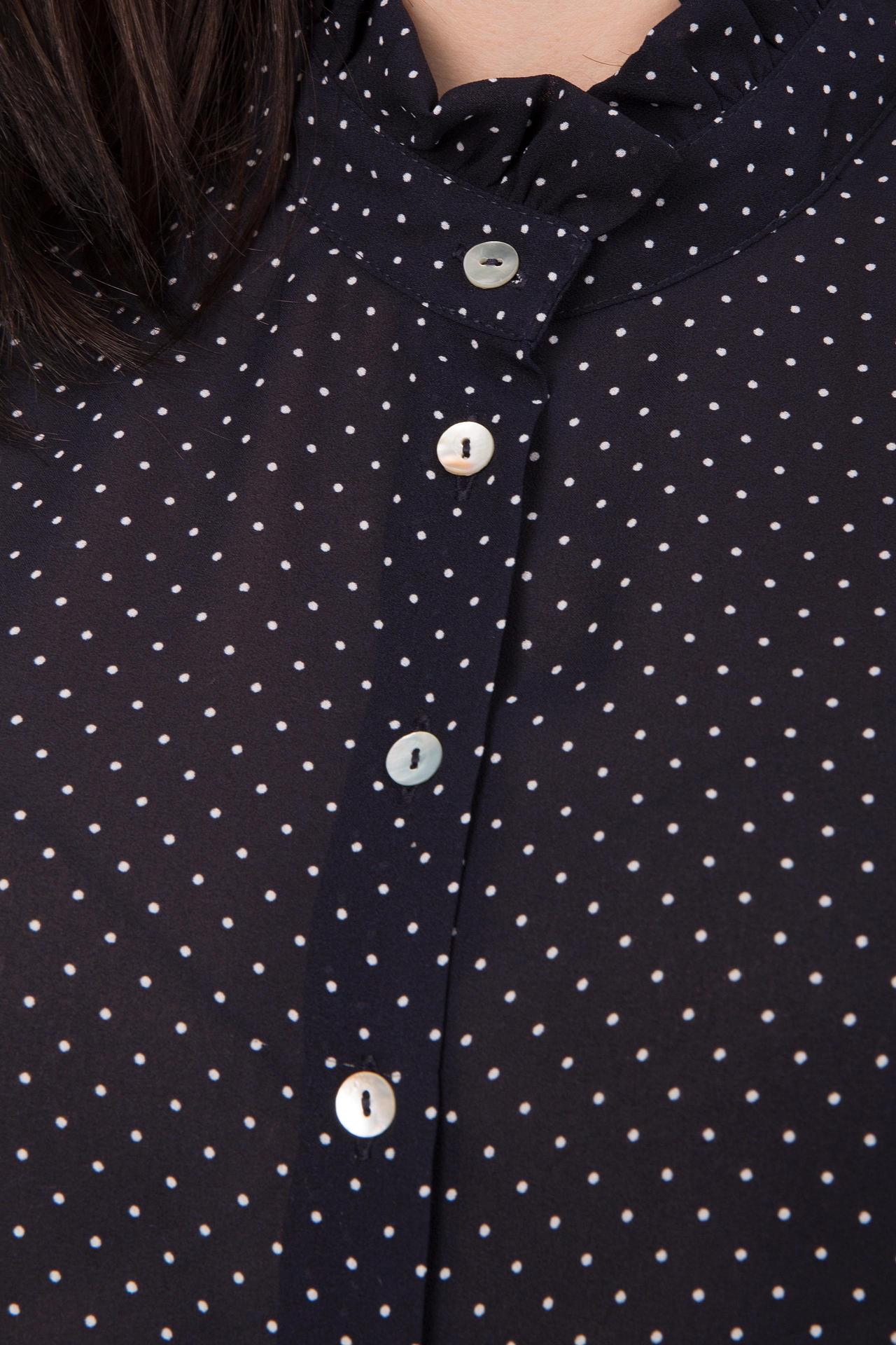 Элегантная блуза в мелкий горошек – идеальное дополнение к вашему гардеробу. Ткань из 100% полиэстера обеспечивает легкость и комфорт в носке. Модель с длинными рукавами и изящной оборкой на воротнике добавляет образу женственности и шарма.