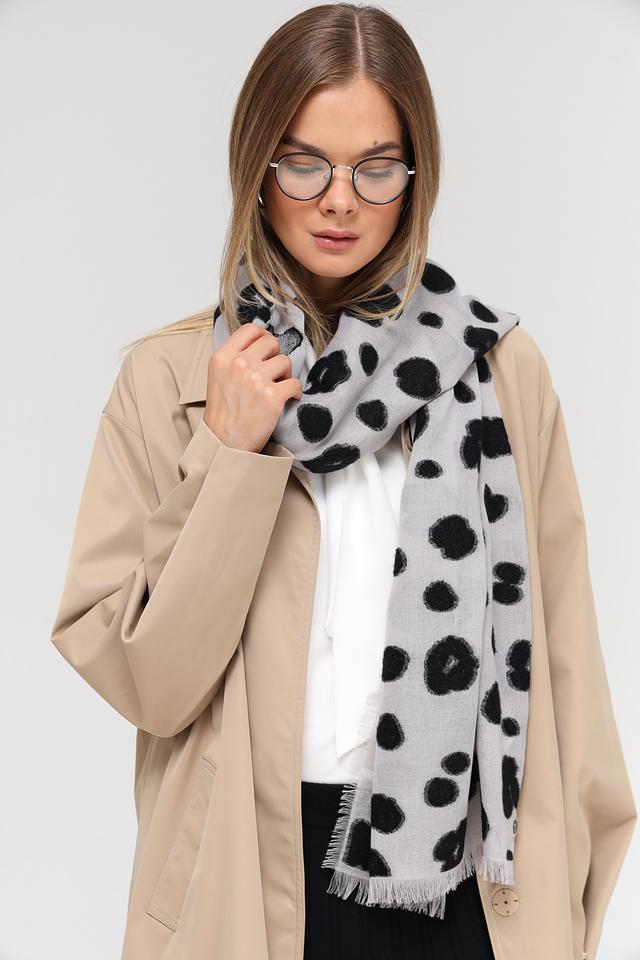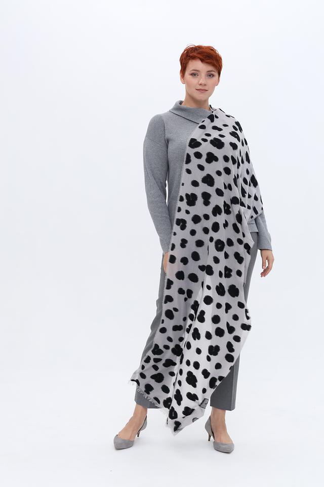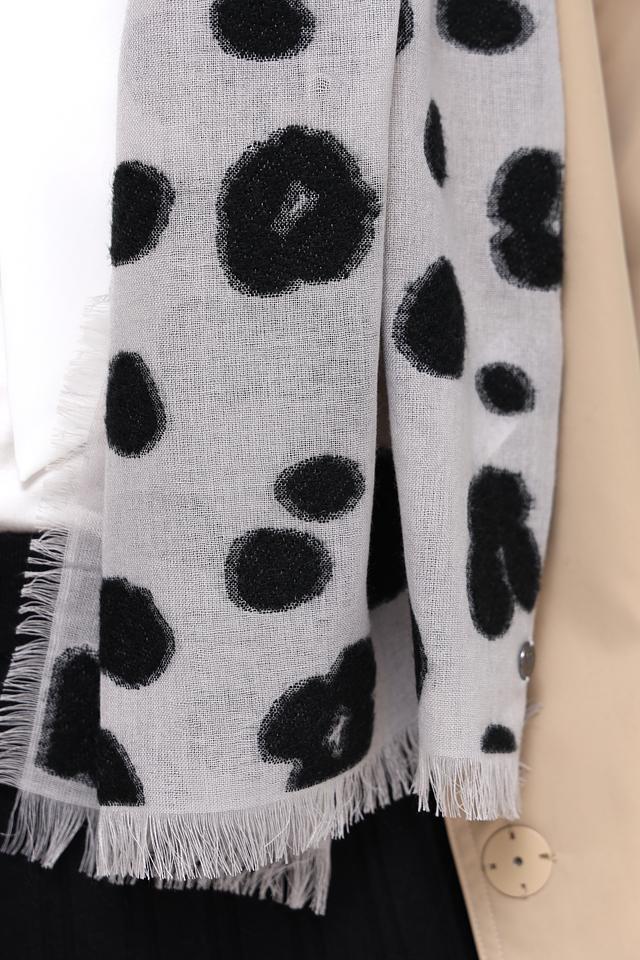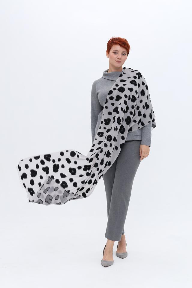 Этот шарф от Fraas – идеальный аксессуар для создания модного и завершенного образа. Шарф выполнен в светло-серой цветовой гамме и украшен контрастным черным леопардовым принтом, что придает ему выразительность и динамичность.