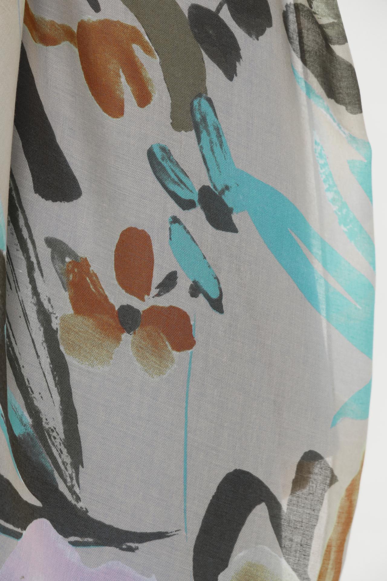 - Уникальный дизайн. Шарф украшен выразительным абстрактным узором, сочетающим в себе нежные и яркие оттенки. Эта оригинальная расцветка позволяет легко комбинировать аксессуар с разнообразной одеждой.