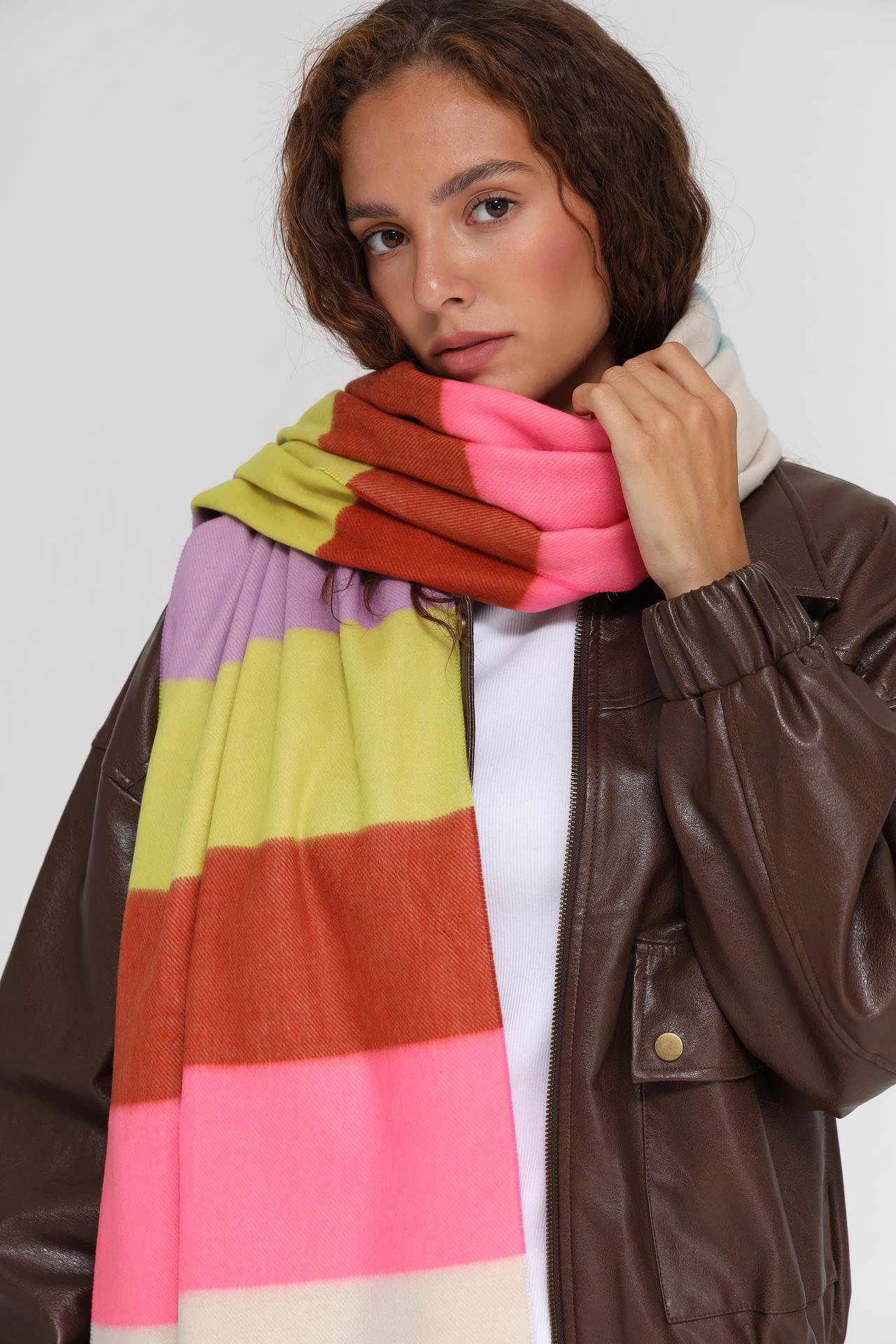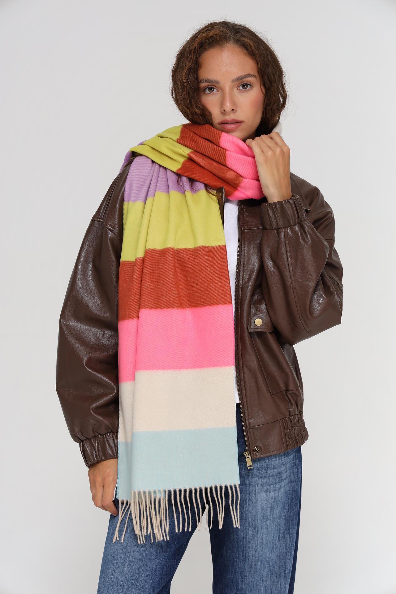 - Яркий дизайн: Сочные полосы разных оттенков создают модный и привлекательный образ. Позволяет легко добавить акцент к однотонному наряду или гармонично вписаться в многослойный комплект.