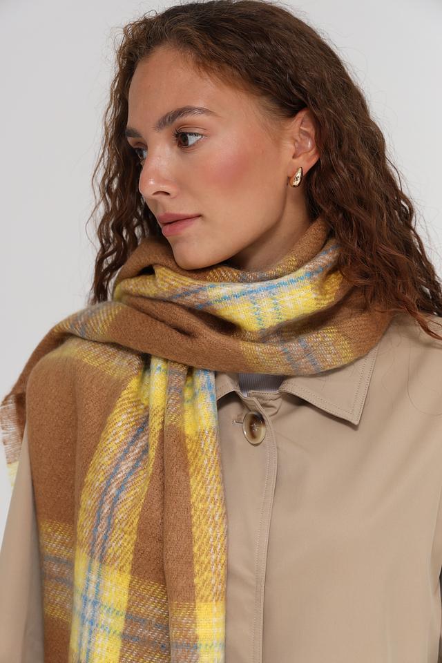 Этот шарф от Fraas – идеальный аксессуар для создания уютного и стильного образа. Шарф выполнен в коричневой цветовой гамме и украшен классическим клетчатым принтом, сочетающим в себе оттенки коричневого, жёлтого и голубого.