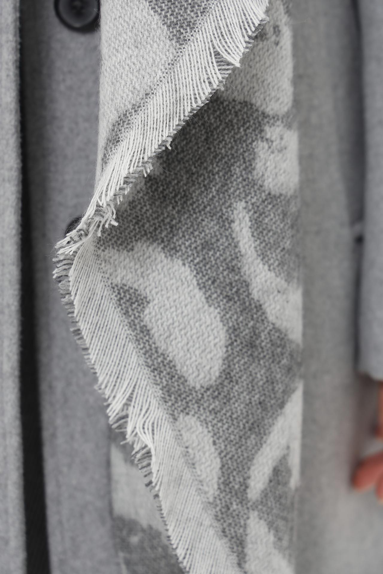 - Отделка: Шарф украшен бахромой по краям, добавляющей легкости и завершенности образу.