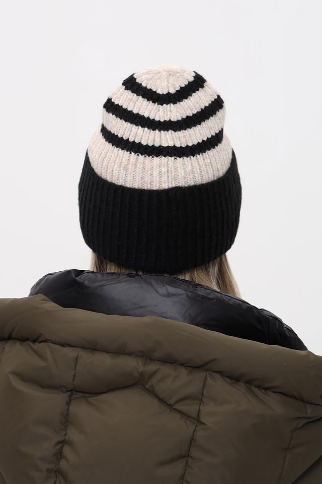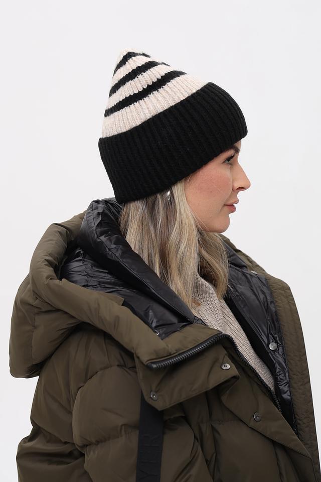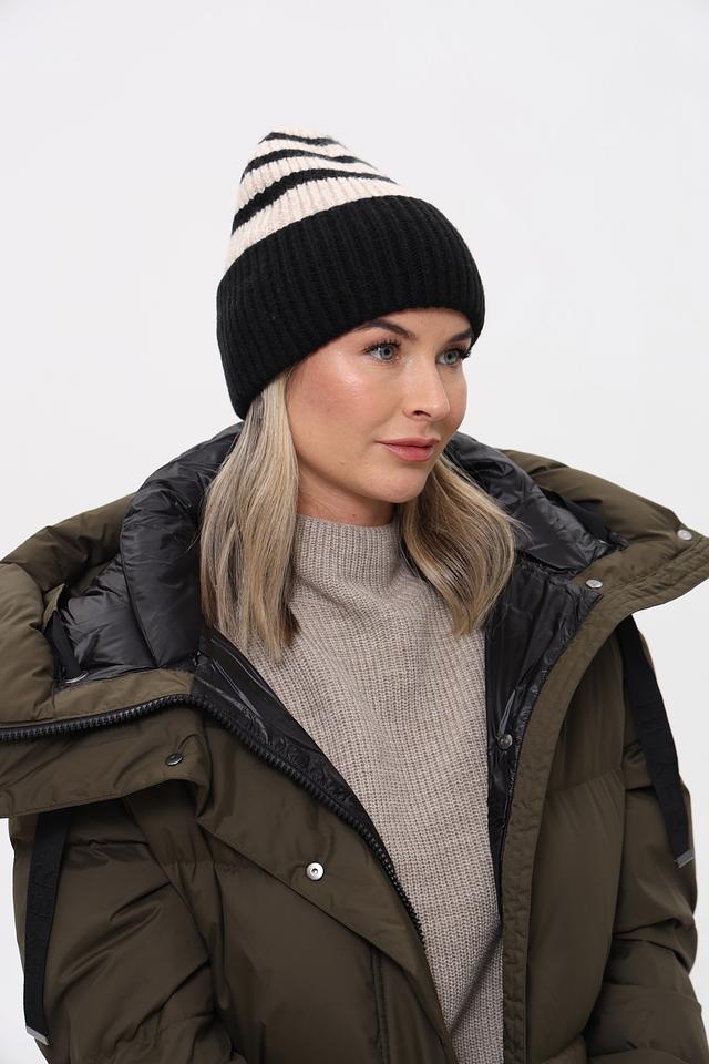 Стильная шапка Fraas чёрно-бежевого цвета с полосатым узором. Изготовлена из мягкого и тёплого сочетания полиакрила, полиамида и шерсти. Состав: полиакрил 55%, полиамид 40%, шерсть 5%