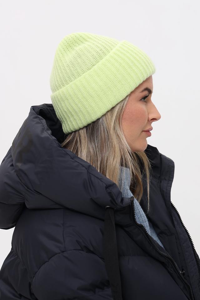Шапка имеет классический дизайн и универсальную форму, которая подойдет практически к любому типу лица. Яркий лаймовый цвет добавит свежести и оригинальности вашему образу. Вязаная текстура придает шапке объем и уютный вид.