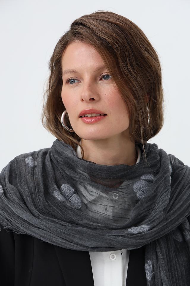 Элегантный шарф от бренда Fraas станет стильным акцентом вашего образа. Шарф выполнен в сером цвете и украшен узором в горошек, который придает ему особый шарм.