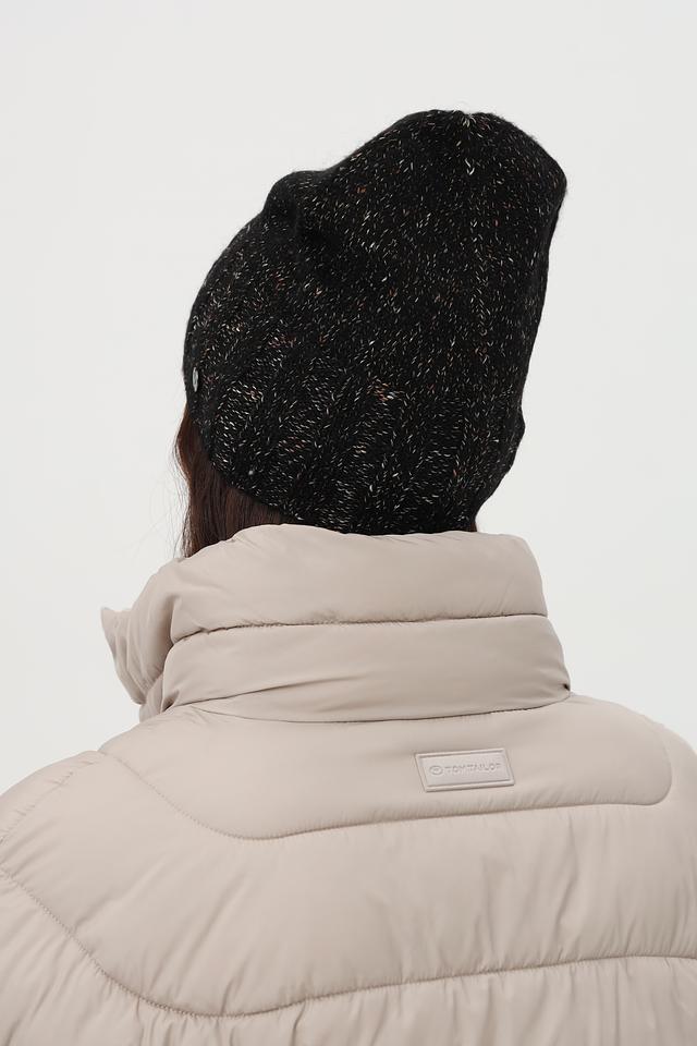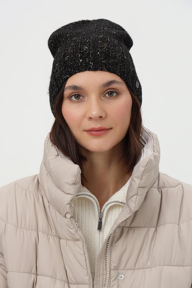 Чёрная шапка Fraas с добавлением блестящих нитей — стильный и тёплый аксессуар для зимнего сезона. Изготовлена из мягкого сочетания шерсти и полиэстера, обеспечивающего комфорт и тепло в холодную погоду. Состав: полиэстер 55%, полиакрил 36%, метализ.нить 6%, шерсть 3%