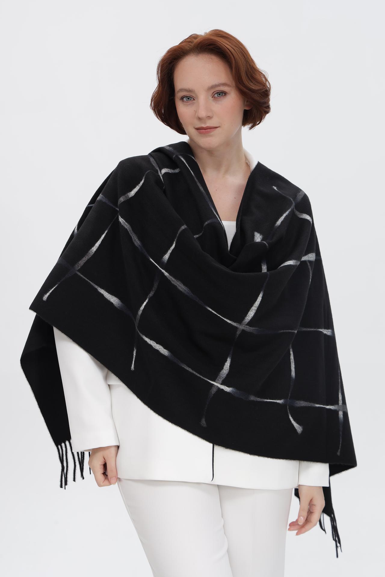 Элегантный шарф от бренда Fraas станет идеальным дополнением вашего образа. Классический черный цвет с оригинальным принтом в виде клетки, выполненной серебристыми и белыми линиями, придает шарфу особый шарм. Он прекрасно сочетается как с деловыми костюмами, так и с повседневной одеждой, добавляя изысканности и стиля.