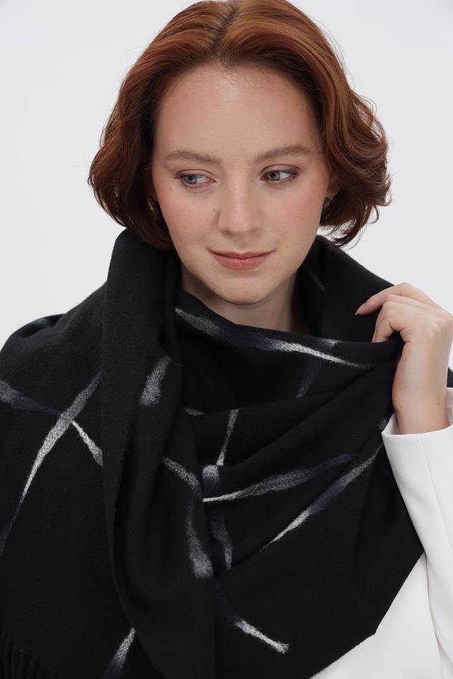 Чёрный шарф Fraas с геометрическим рисунком в клетку станет стильным дополнением к вашему образу. Изготовлен из мягкого сочетания полиэстера и вискозы, обеспечивая комфорт и тепло в холодное время года. Состав: полиэстер 70%, вискоза 30%