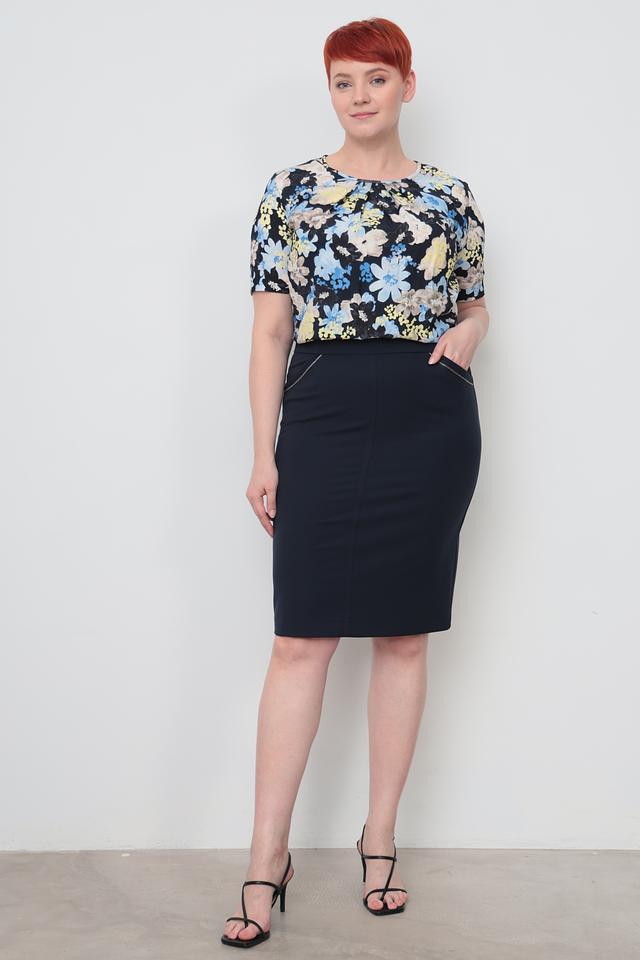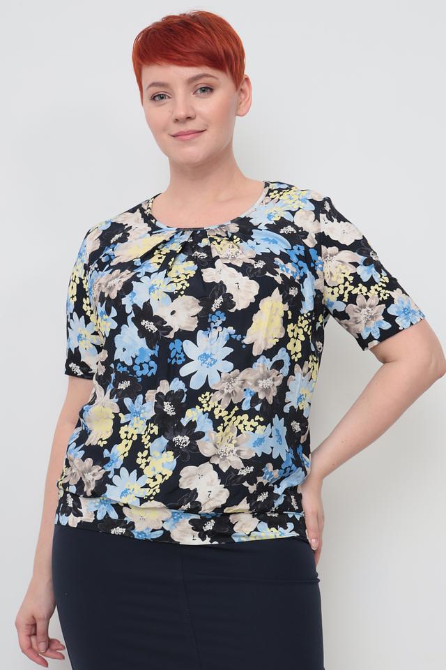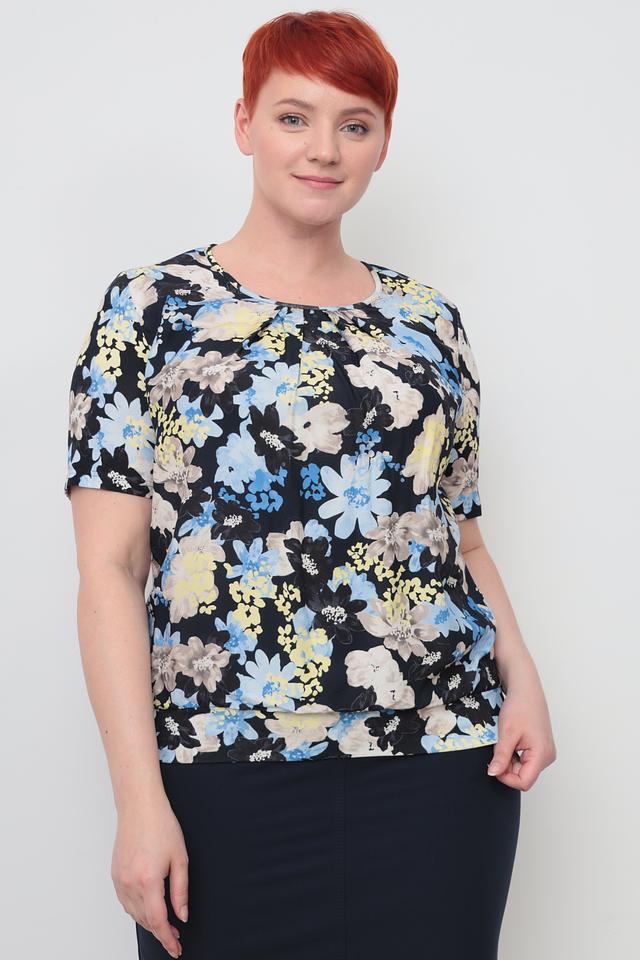 Модель имеет округлый вырез горловины и короткие рукава. Блуза выполнена из качественной вискозы с добавлением эластана, что обеспечивает мягкость, комфорт и хорошую посадку по фигуре. Ткань приятна к телу и хорошо драпируется.