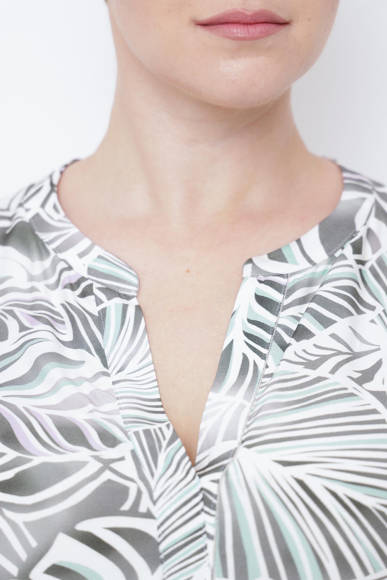 Элегантная блуза от Frank Walder с оригинальным принтом в виде тропических листьев станет прекрасным дополнением вашего гардероба. Изготовленная из мягкой и приятной на ощупь вискозы с добавлением эластана, блуза обеспечивает комфорт и свободу движений в течение всего дня. Легкая ткань идеально подходит для теплой погоды, позволяя коже дышать.