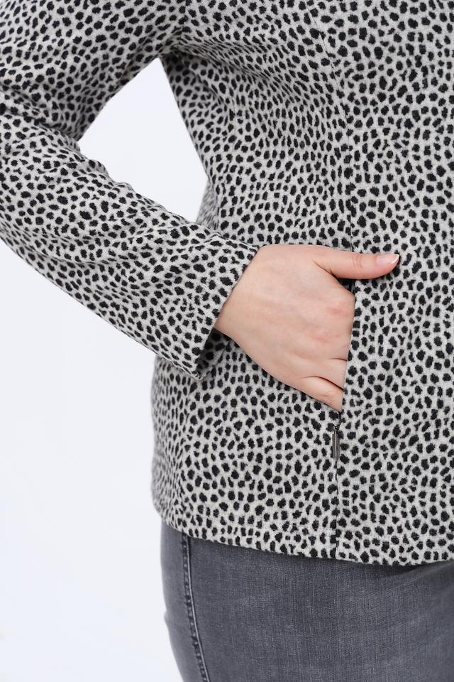 Этот жакет от Frank Walder – отличный выбор для тех, кто ценит комфорт и стиль. Жакет выполнен в бежевом цвете и украшен эффектным пятнистым принтом, который придает ему особую изысканность.