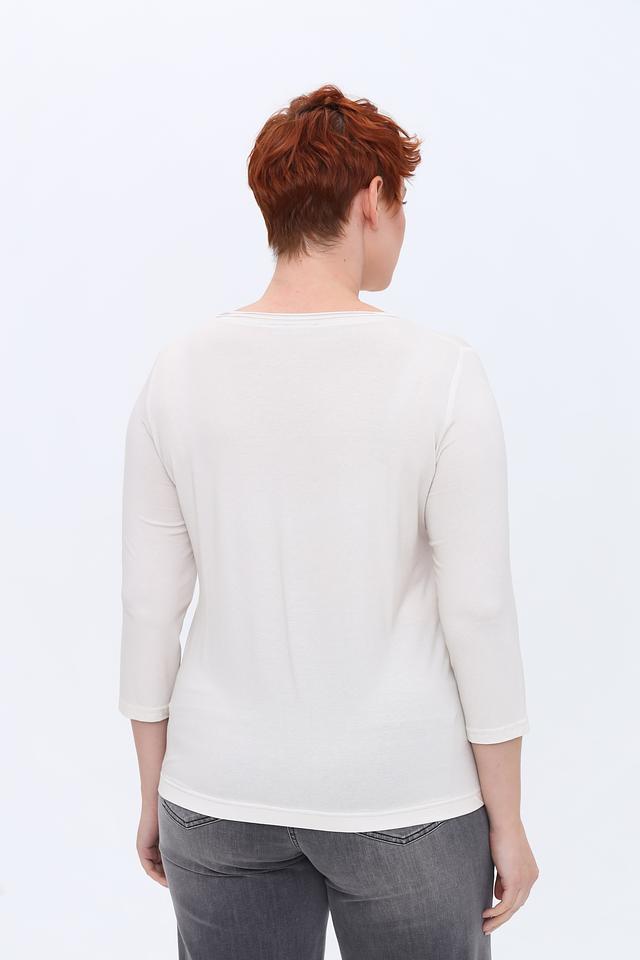 Модель имеет длину рукава 3/4 и круглый вырез горловины. Благодаря своему универсальному дизайну, этот лонгслив легко сочетается с различными предметами одежды, такими как джинсы, юбки или брюки. Состав: 96% вискоза, 4% эластан.