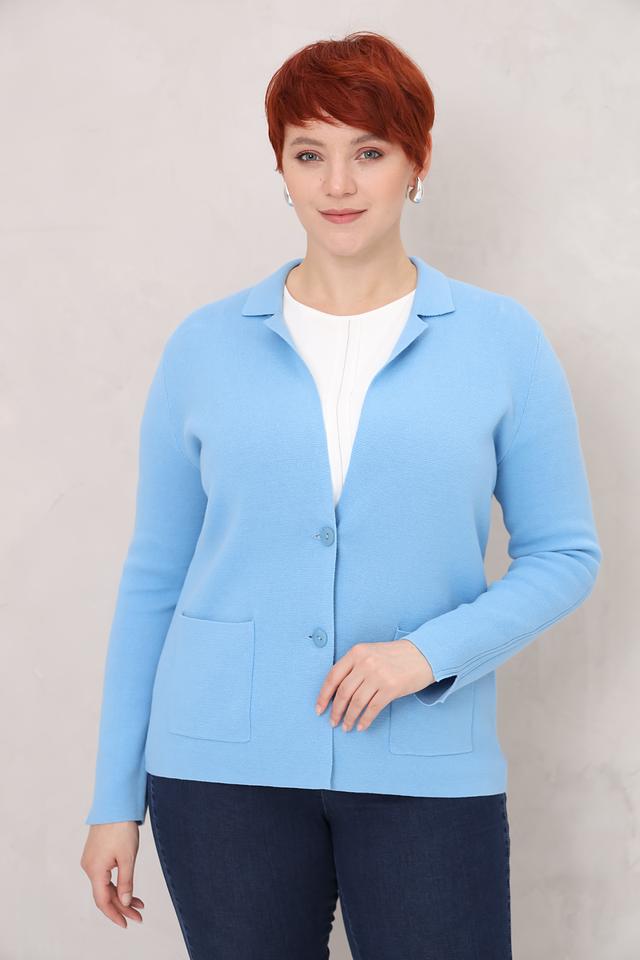 Жакет имеет застежку на пуговицы, два накладных кармана и отложной воротник. Изготовлен из высококачественного 100% хлопка, что обеспечивает приятные тактильные ощущения и комфорт в носке.
