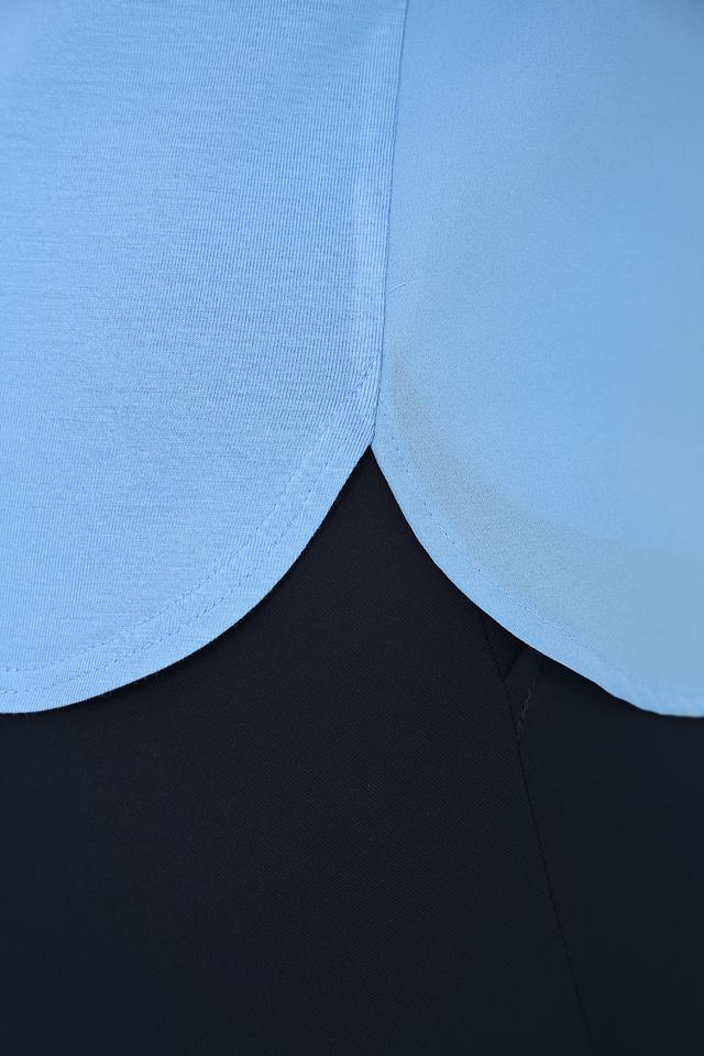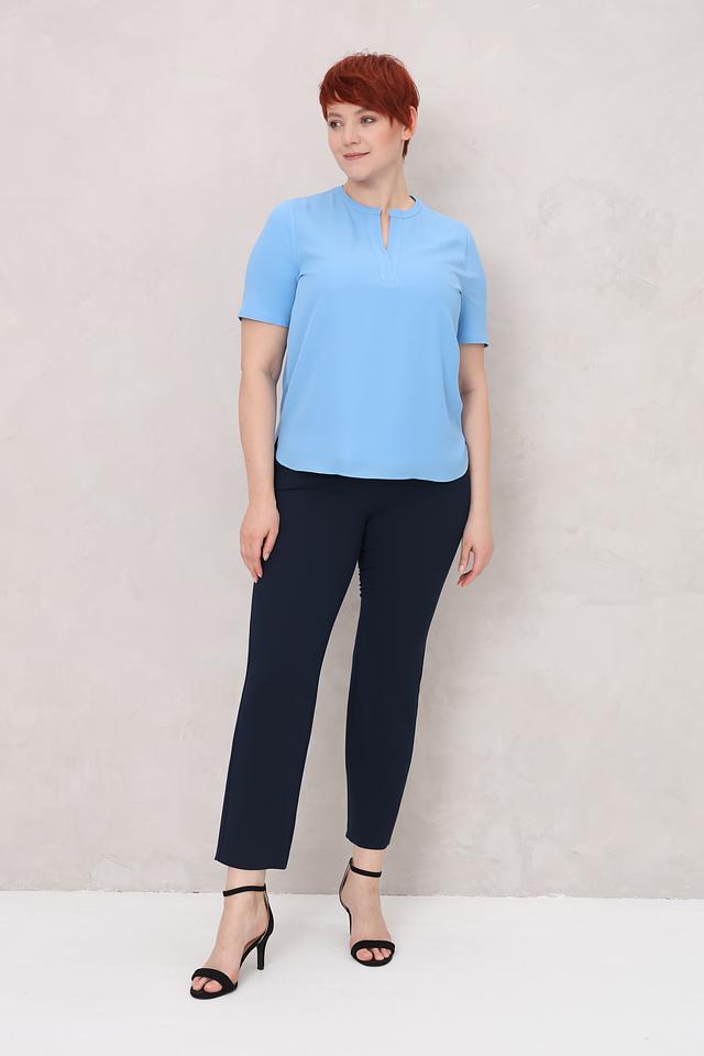 Благодаря своему лаконичному дизайну, эта блуза легко сочетается с различными предметами одежды – от классических брюк до юбок и джинсов. Она подойдет как для офиса, так и для повседневной носки. Голубой цвет блузы освежает образ и придает ему легкость.