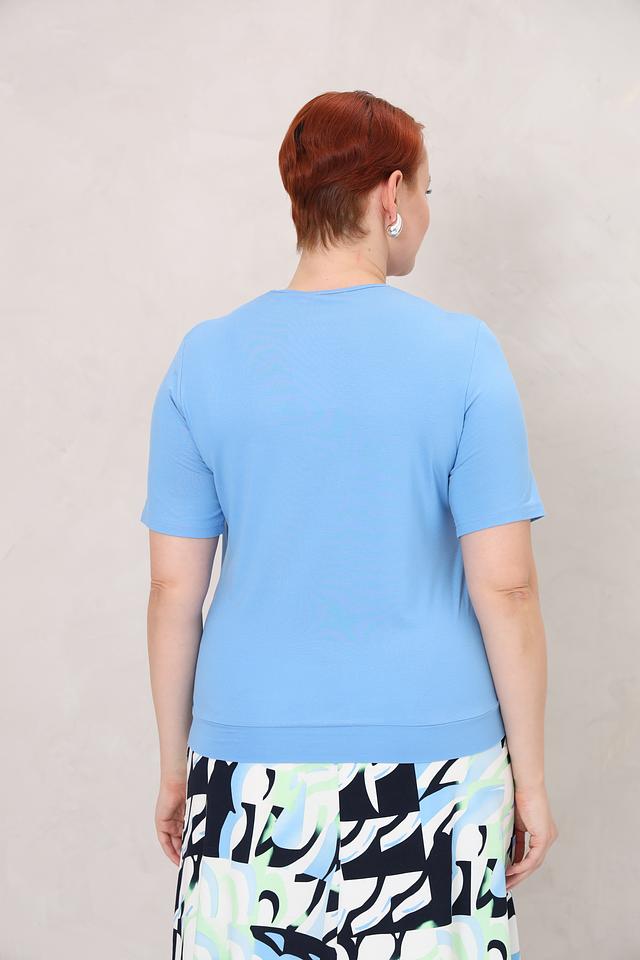 Голубая блуза Frank Walder – это элегантная модель с округлым вырезом и драпировкой. Блуза выполнена из мягкой вискозы с добавлением эластана, что обеспечивает комфорт и отличную посадку по фигуре. Состав: вискоза 93%, эластан 7%