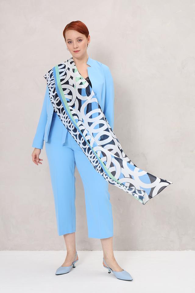 Этот шарф от Frank Walder – идеальный аксессуар для создания яркого и запоминающегося образа. Шарф выполнен в голубой цветовой гамме и украшен абстрактным геометрическим принтом, сочетающим в себе оттенки белого, черного и мятного.